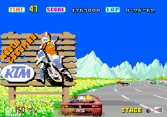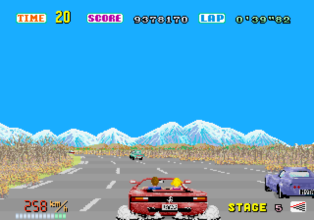 Sega-folket fikk i alle fall en versjon de kunne være fornøyd med i 1991, da spillet dukket opp på 16-bits-konsollen Mega Drive. Det sier sitt om hvor heftig maskinvaren i originalspillet var at vi i 1991 ikke er i nærheten av samme tekniske kvalitet, men Mega Drive-utgaven føles likevel trofast på alle områder. Det ser flott ut, med detaljerte omgivelser og svære biler, og musikken er også mye bedre enn på Master System. I tillegg er animasjonene glatte, og bilen føles betydelig mer «riktig» å kjøre.