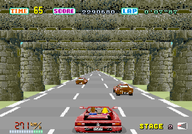 På åttitallet fantes det to separate spillverdener: Den vi kunne oppleve hjemme, med datamaskinen eller konsollen, og den vi kunne oppleve ute, med arkademaskinene. Arkademaskiner var dyre monstre som var enormt mye kraftigere enn noe man hadde på hjemmemarkedet. Out Run-maskinen er et godt eksempel. Den hadde to Motorola 68000-prosessorer som begge kjørte 12.5 MHz, samt én 4 MHz Zilog Z80-prosessor og en egen lydbrikke, YM2151, som også kjørte på 4 MHz. Dessuten var maskinvaren spesialdesignet for å kjøre nettopp Out Run og ingenting annet.