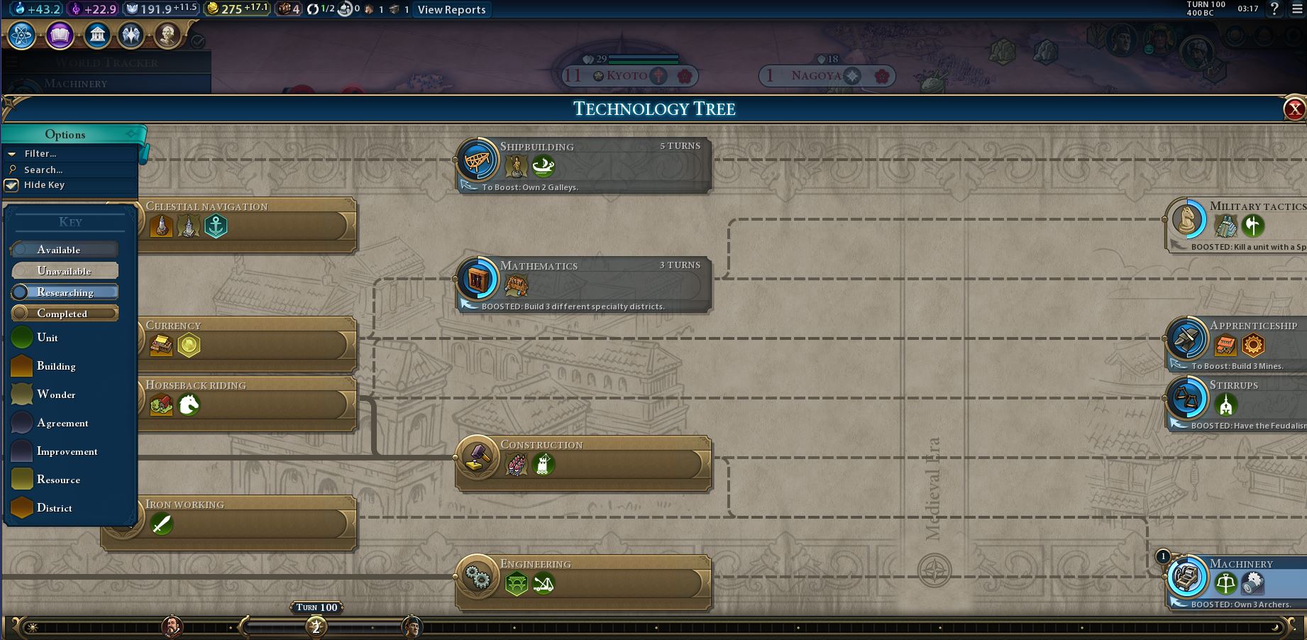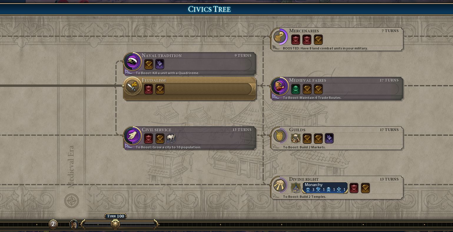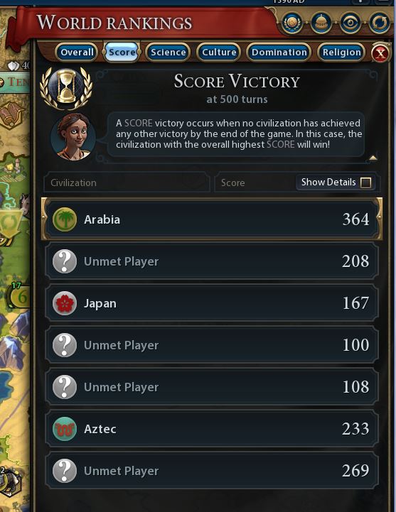 De neste omgangene brukte jeg på å skaffe meg eurekaer for teknologier. Til min store lettelse var aztekerne vennlig innstilt til meg, og tilbød meg vennskapspakt! Det betyr at vi ikke kan erklære krig på hverandre mens denne pakten er i effekt.