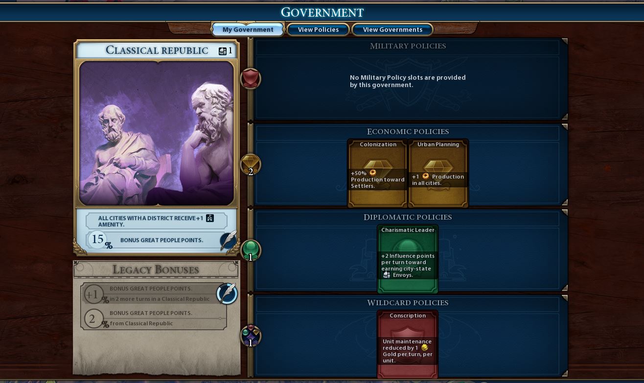 Omgang 57 avanserer vi kulturelt så langt at vi får muligheten til å utvikle regjeringsformen vår til en mer moderne type. Vi blir en klassisk republikk!