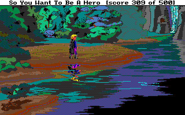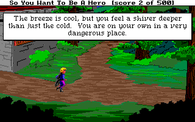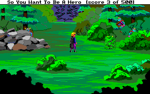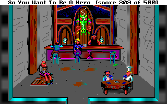 Det originale spillet i serien fikk forøvrig en nyversjon i 1992. Denne brukte den neste generasjonen Sierra-motor, og hadde et rent grafisk grensesnitt og grafikk med 256 farger. Jeg har laget en omfattende sammenligning av de to versjonene i en annen artikkel. Selv vender jeg alltid tilbake til originalen – jeg liker tekstgrensesnittet og EGA-grafikken best. Men både det tredje og det fjerde spillet i serien bruker samme motor, og i det fjerde fungerer den faktisk veldig godt.