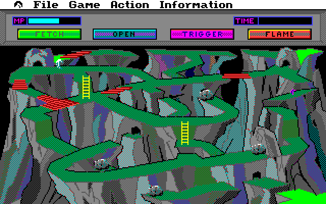 Dette er grunnen til at så godt som alle skjermbildene i denne artikkelen inneholder store flater med sjakkbrettmønster, og generelt ganske få store, ensfargede områder. Hvis du tar en nøyere titt på bildene, så er det altså de samme 16 fargene som brukes i alle sammen, enten det er snakk om dag, natt, innemiljøer eller utemiljøer. Det ser ikke sånn ut, gjør det vel? Spillets grafikk ble laget av et helt team med artister, og i mine øyne har de gjort en svært god jobb. Jeg er spesielt begeistret for skogene og hulemiljøene, og enkelte skjermer syntes jeg fortsatt er skikkelig flotte.