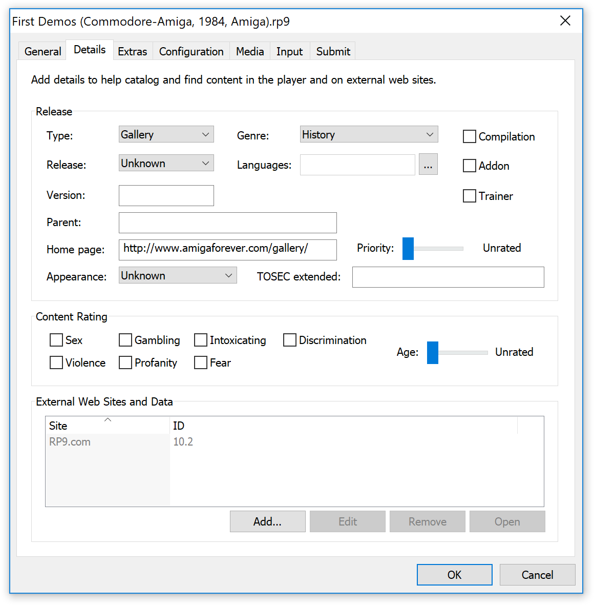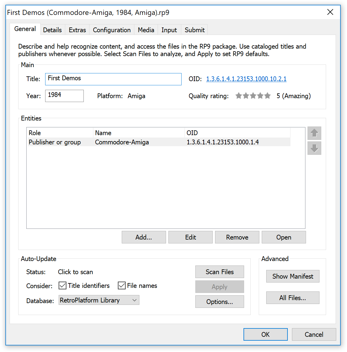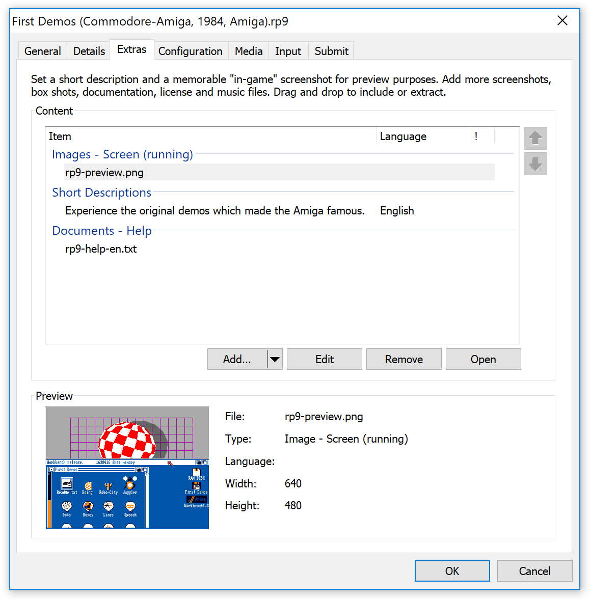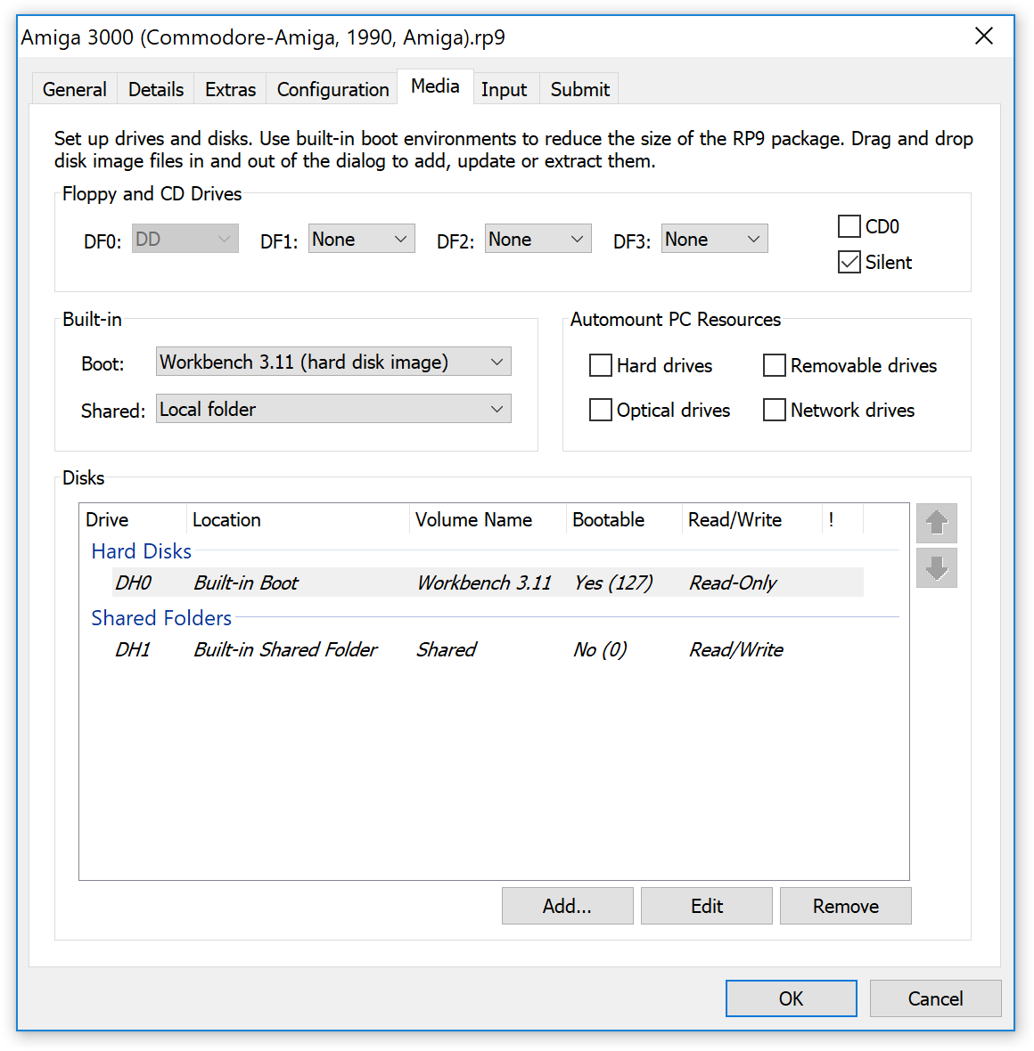 Så da har vi Systems, Games og Demoscene som de tre mest relevante kategoriene. Der finner vi henholdsvis ferdigoppsatte Amiga-systemer, inkluderte spill og demoscene-produksjoner. Det er også her du legger inn nye systemer, spill og demoer selv; pakken har mye rart inkludert, men du kommer helt sikkert til å ville bruke emulatoren til andre ting også.