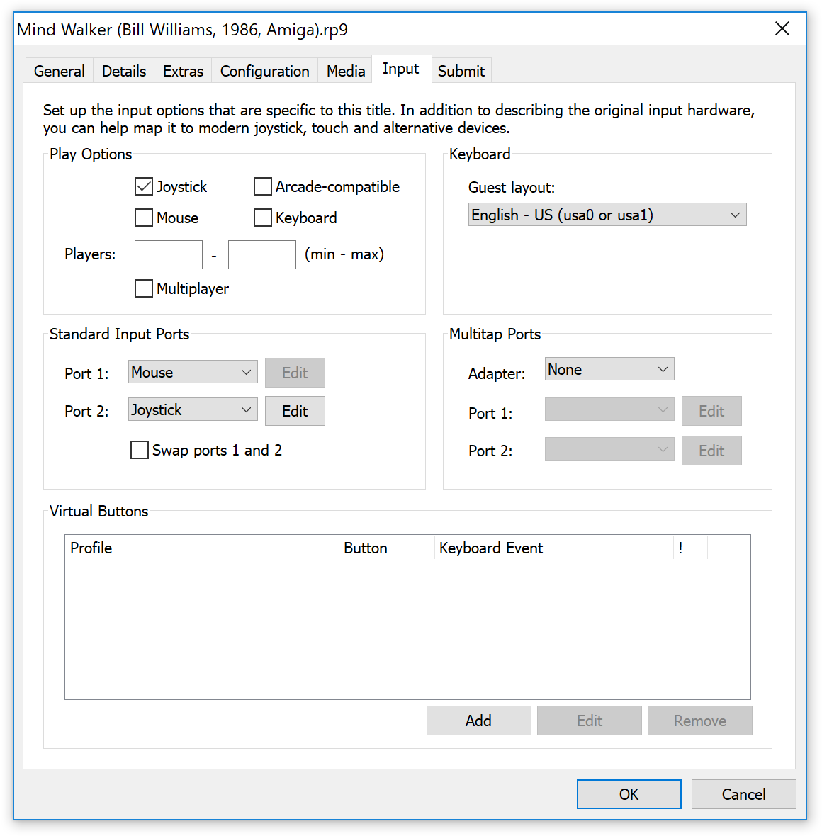 Å legge inn ekstra spill er uansett ganske enkelt. Det du gjør er å velge «new» i hovedmenyen, og så får du opp et vindu der du begynner med å skrive inn tittelen. Sannsynligvis får du treff i RetroPlatform-databasen. Da kan du sjekke hva slags plattform du trenger (Amiga 500, Amiga 1200, og så videre) ved å trykke på lenken ved siden av, og så er det i de aller fleste tilfellene bare å gå inn i «configuration»-menyen og velge riktig plattform. Du må selvsagt også velge diskettfilene, og legge disse inn i konfigurasjonen. Det er litt rart at du manuelt må koble opp mot RetroPlatform-systemet og sjekke konfigurasjonen; dette burde egentlig ha blitt gjort automatisk. Men det tar under minuttet, og så er spillet klart for å spille.