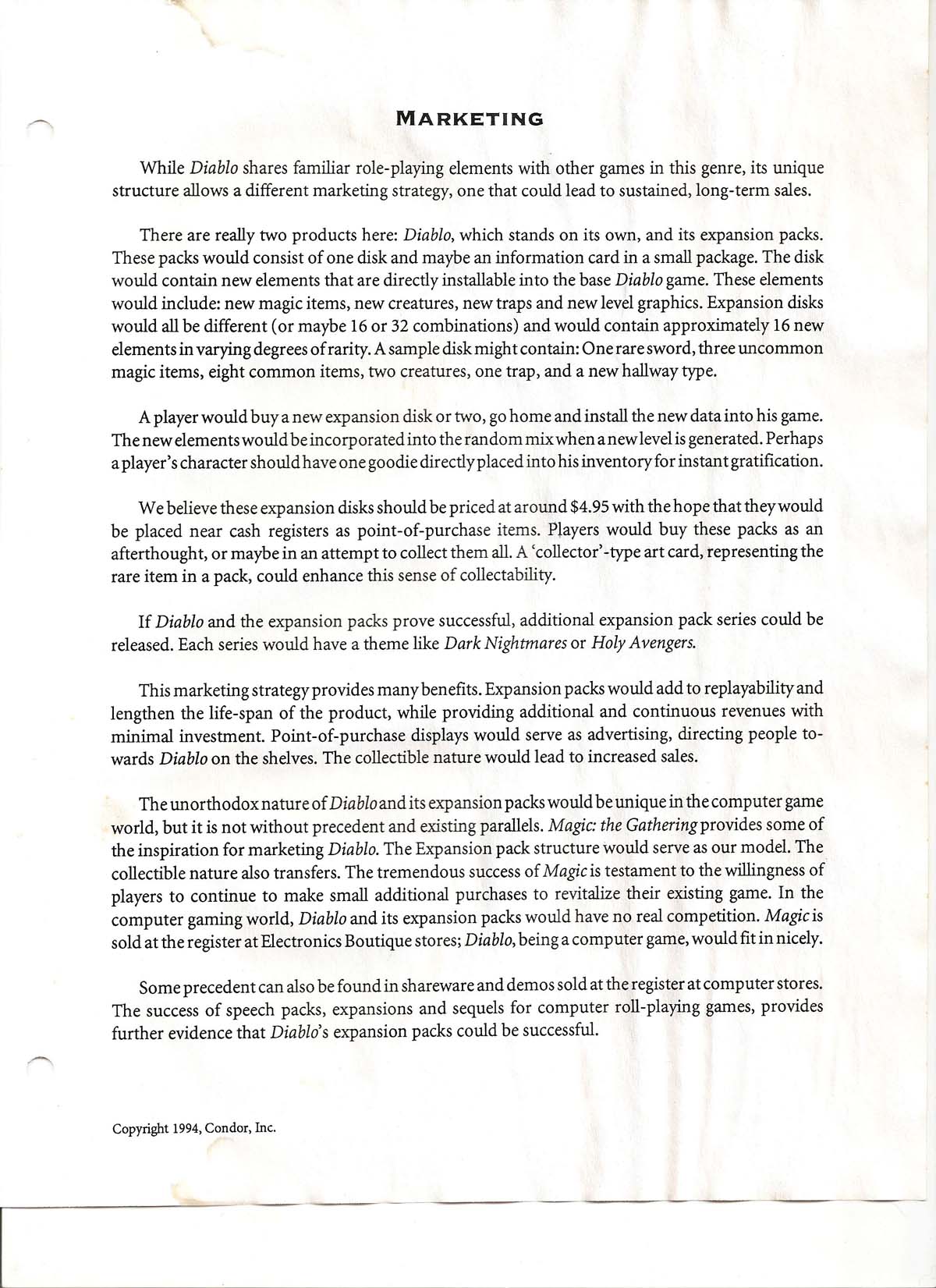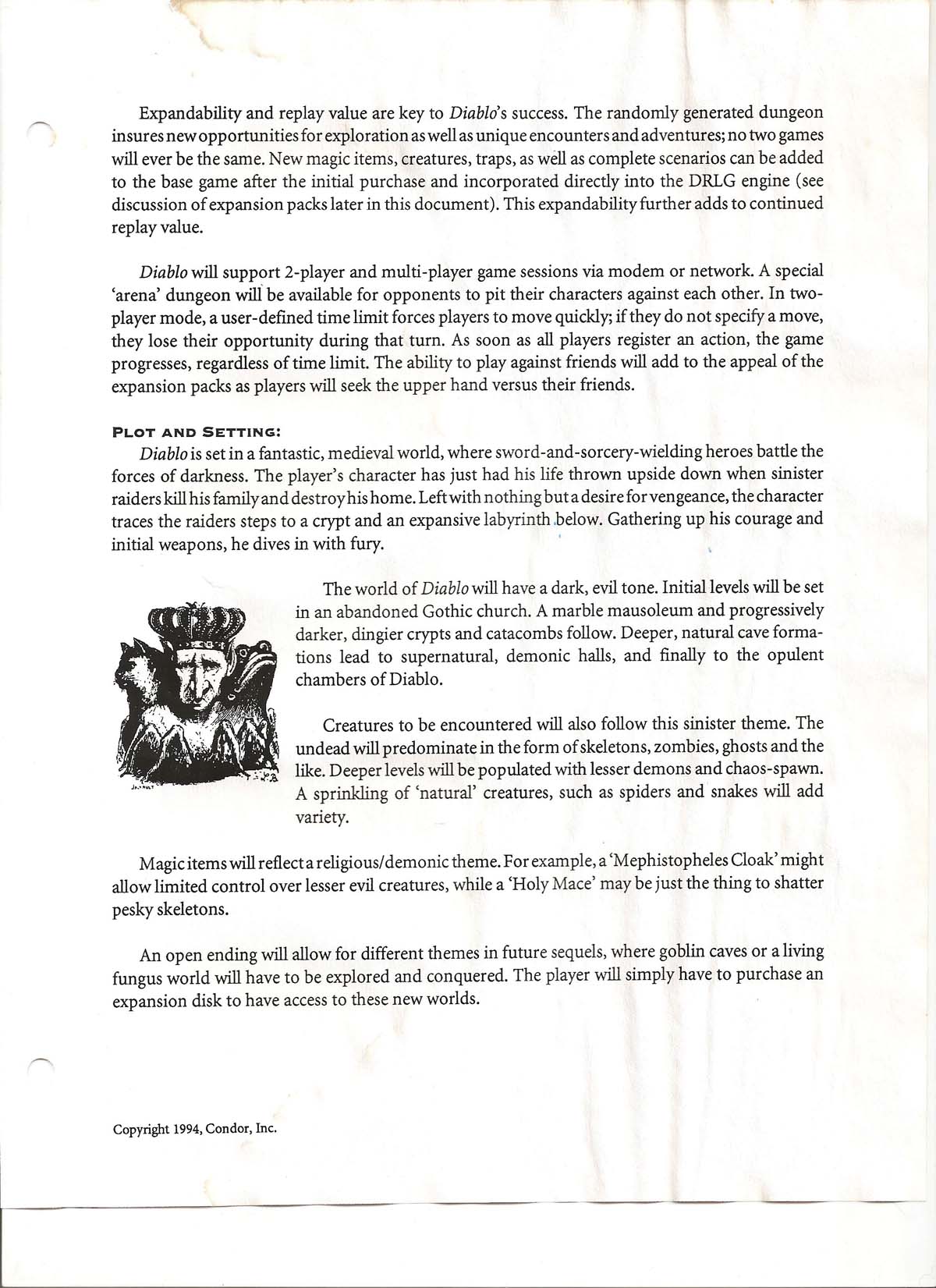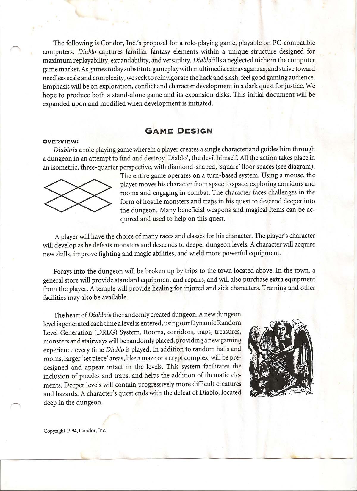 Men her passer det kanskje å ta en titt på det originale Diablo-konseptet som Condor opprinnelig markedsførte for utgiverne. Det er nemlig ikke helt likt det endelige spillet, og man kan til en viss grad forstå utgivernes skepsis