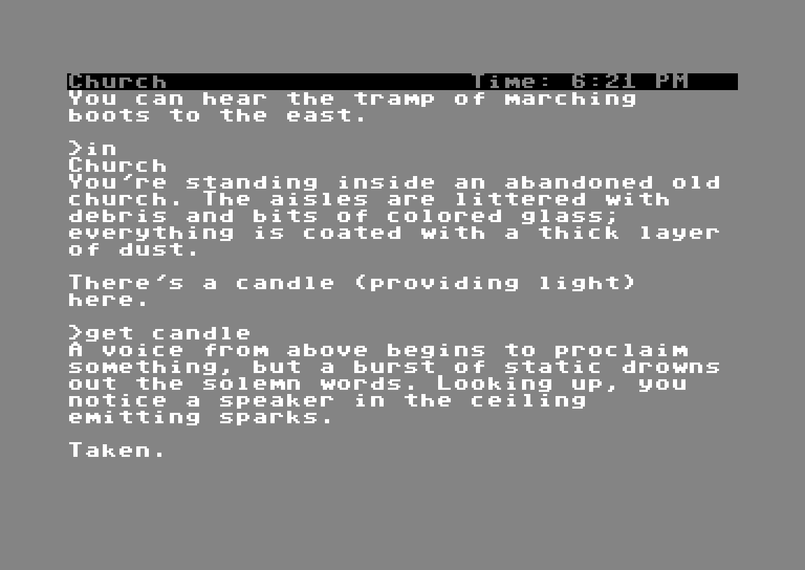Infocom lagde noen av åttitallets mest kritikerroste eventyrspill, fra Zork og Enchanter til A Mind Forever Voyaging og Hitchhiker’s Guide to the Galaxy. Ved å kutte ut all grafikk og lyd, kunne de tilby rike, tekstbaserte beskrivelser av det som fant sted i spillene sine. Samtidig fikk spillerne stor frihet til å prøve hva de ville – når Infocom kun jobbet med tekst, kunne de i praksis la deg forandre hele spilluniverset med et pennestrøk.