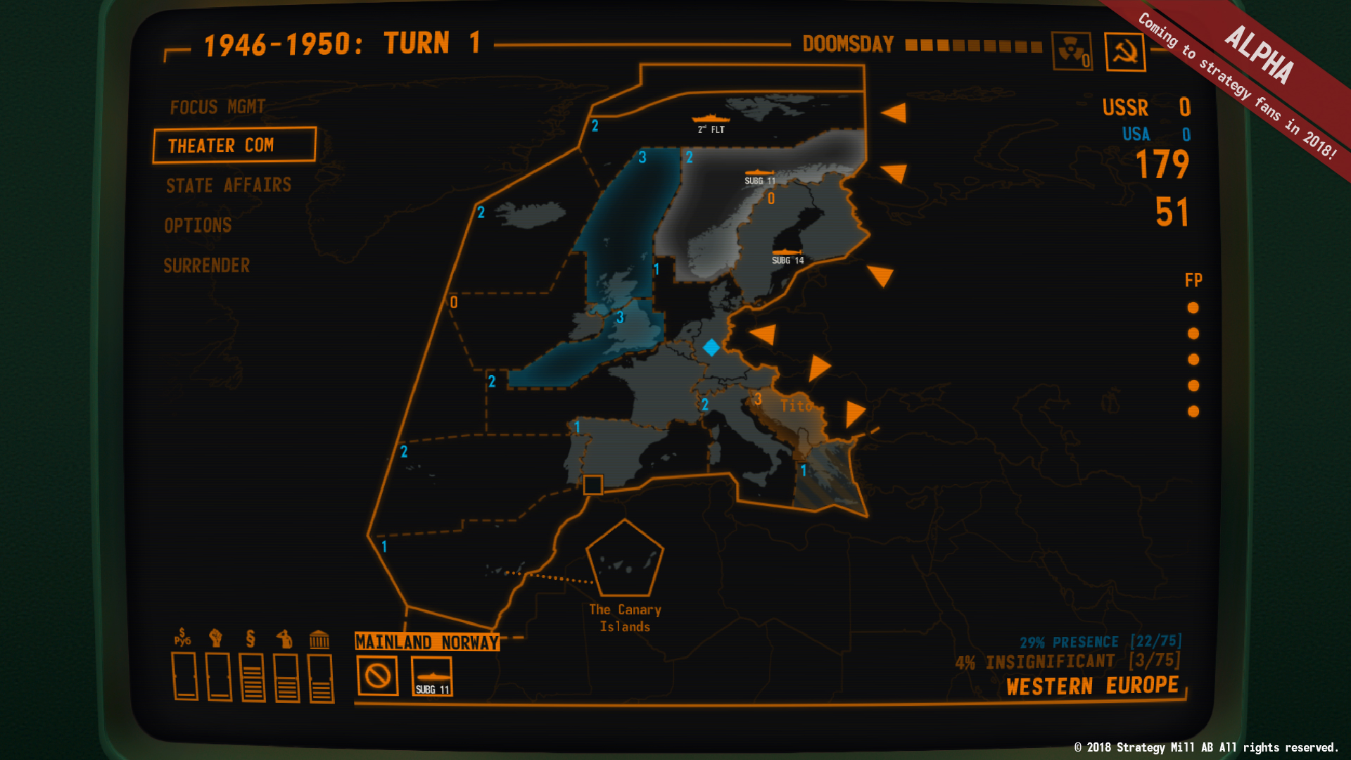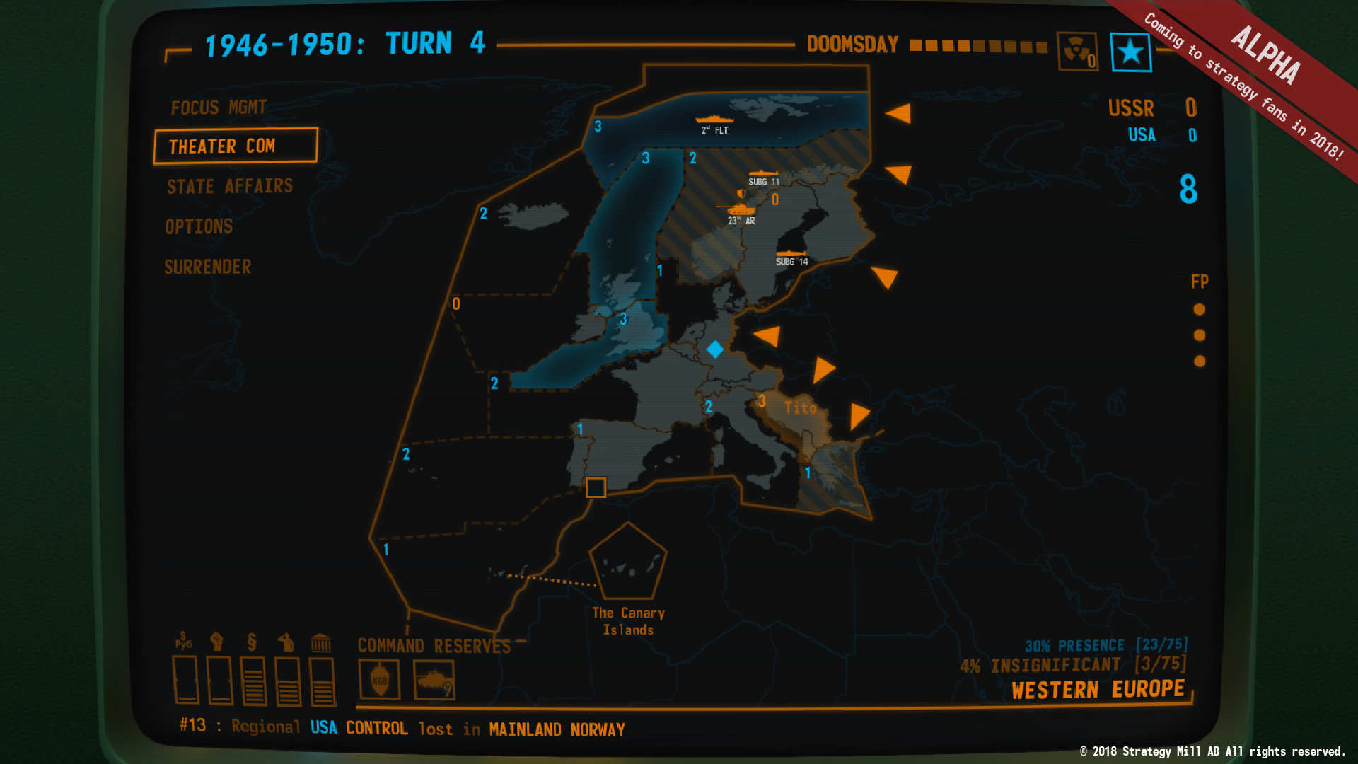 Spillhistorien er full av kule strategispill. Ofte handler de om krig, og andre verdenskrig blir for eksempel hyppig dekket. Men hvor ofte ser vi strategispill som handler om den kalde krigen? Noe sjeldnere kan man si. For noen år siden inngikk Paradox Interactive samarbeid med en gruppe utviklere om å lage et strategispill om nettopp den kalde krigen, bygd på Clauzewitz-motoren som kjører blant annet Hearts of Iron og Europa Universalis. Dette spillet skulle hete East versus West. Dessverre ble det kansellert.