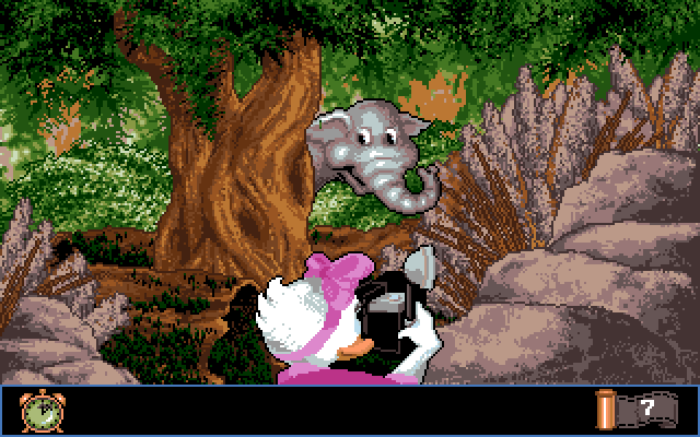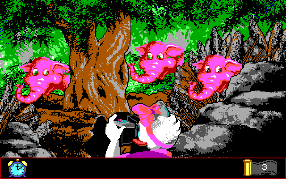 Fotosafari (det er en sjeldnere elefantvariant som vises på PC og Commodore 64, det er ikke slik at vanlige elefanter er rosa i disse versjonene. Det ene Commodore 64-bildet er forøvrig tatt med blitz, da lyses rammen opp og blir hvit):
