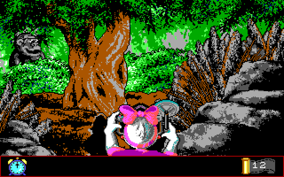 PC-versjonen bruker 16 farger, og her er det den vanlige EGA-paletten som gjelder, så det er de samme 16 fargene som går igjen i alle bildene. Heller ikke her er det noen begrensninger på hvilke piksler som kan ha hvilke farger. Oppløsningen er som på Amiga.
