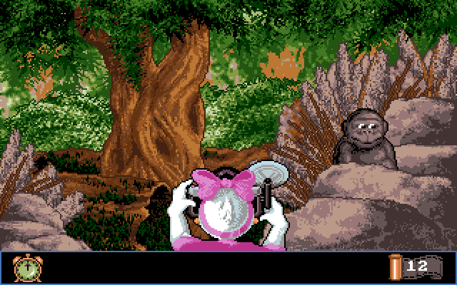 Det neste minispillet er jungelutforsking, som byr på en annen plattformspill-variant. Moroa foregår i sideskrollende jungelmiljøer, der du hopper fra grein til grein eller slenge deg videre ved hjelp av lianer. Samtidig må du unngå flygende fugler og kokosnøtter som slippes ned fra tretaket av plagsomme apekatter. Dessuten må du finne måter å navigere deg forbi kvelerslanger og pantere, som ligger på greinene. Kvelerslangene er det ikke så mye å gjøre med (annet enn å unngå dem), men panterne kan du gå trygt forbi så lenge de sover. Bare pass på, slik at du ikke blir kattemat når de våkner igjen.