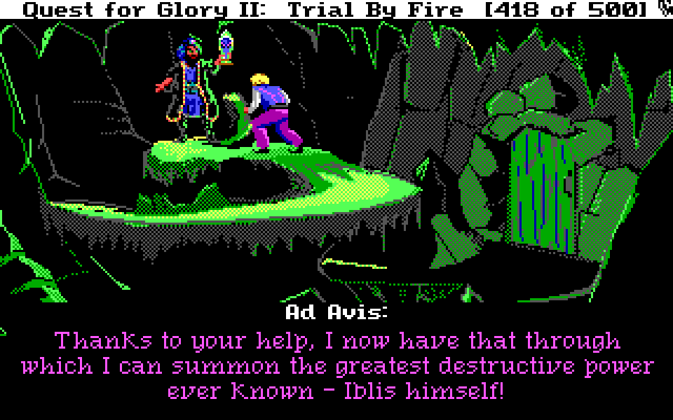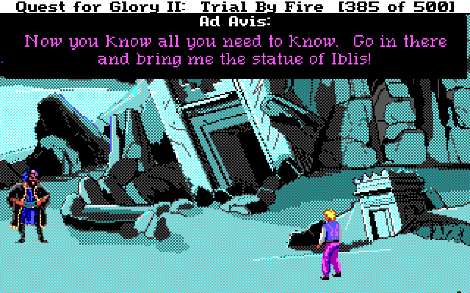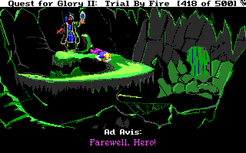 Nå har vi endelig kommet frem til den siste delen av min spilldagbok fra Sierras klassiske eventyr/rollespillhybrid Quest for Glory II. Om du ikke har sjekket denne serien før, anbefaler jeg at du starter med å lese første del. Her er den forrige, og hvis du ikke har lest den vil nok starten på denne delen virke ganske forvirrende. Om du vil spille Quest for Glory-spillene selv, finner du dem på GOG og Steam.