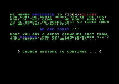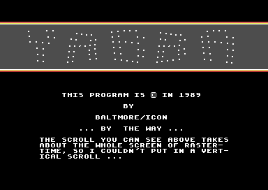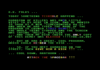 Jeg var ikke nevneverdig interessert i den gryende demoscenen da jeg hadde Commodore 64 – den interessen kom først på nittitallet og med Amiga – men demoer som dette ga meg i alle fall tilgang på mye kul musikk som jeg kun lenge etter fant ut at kom fra kommersielle spill. Jeg har brukt overraskende mange timer i oppveksten på slike demoer, bare for å høre musikken.