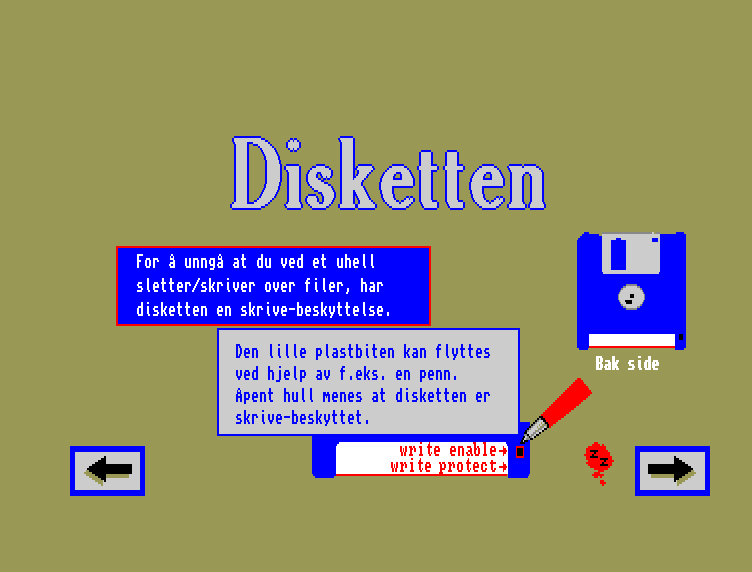 Jeg skrev en større artikkel om presentasjonen på Teknofil for noen år tilbake, og artikkelen er fortsatt tilgjengelig på Tek.no, så jeg skal ikke gjenta meg for mye her. Men det er en litt fascinerende diskett, som viser hvordan ting vi i dag har i blodet måtte inn med teskje, samtidig som det var forventet at vanlige brukere lærte ting som er forbeholdt «ekspertene» i dag.