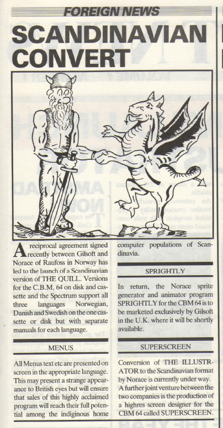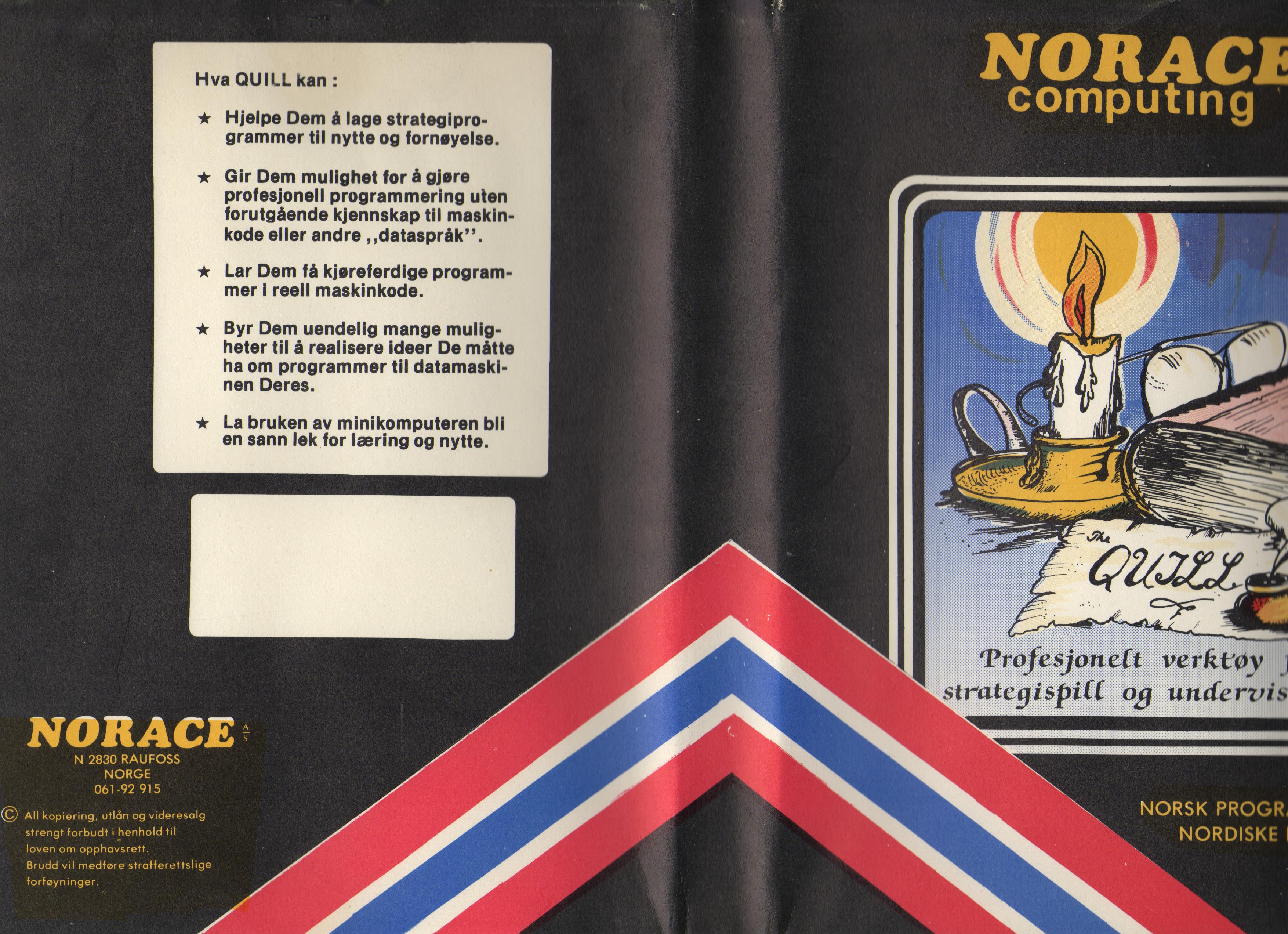 I dag er det antakeligvis få som kjenner til Norace Computing fra Raufoss. Dette selskapet var aktivt på åttitallet, og lanserte flere spill og programmer på norsk. Blant annet fikk de i stand en lisensieringsavtale med britiske Gilsoft, som ga dem rettighetene til å utvikle og gi ut en norsk versjon av teksteventyrverktøyet The Quill.