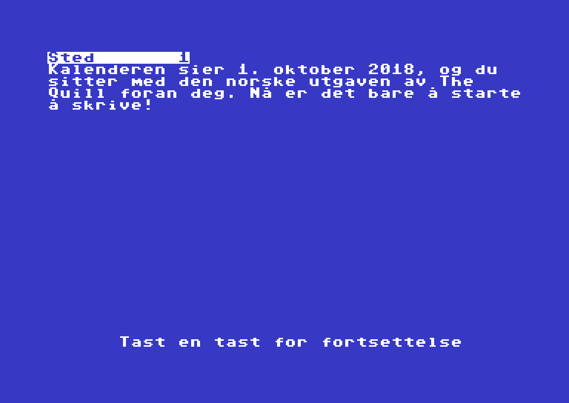 Nå er den norske versjonen av The Quill gjort tilgjengelig på nettet, for første gang. Du kan finne den på nettstedet til Stefan Vogt, som også fikk ordnet lanseringen av teksteventyrverktøyet DAAD for noen uker tilbake. Lanseringen er gjort i samarbeid med Tim Gilberts fra Gilsoft.