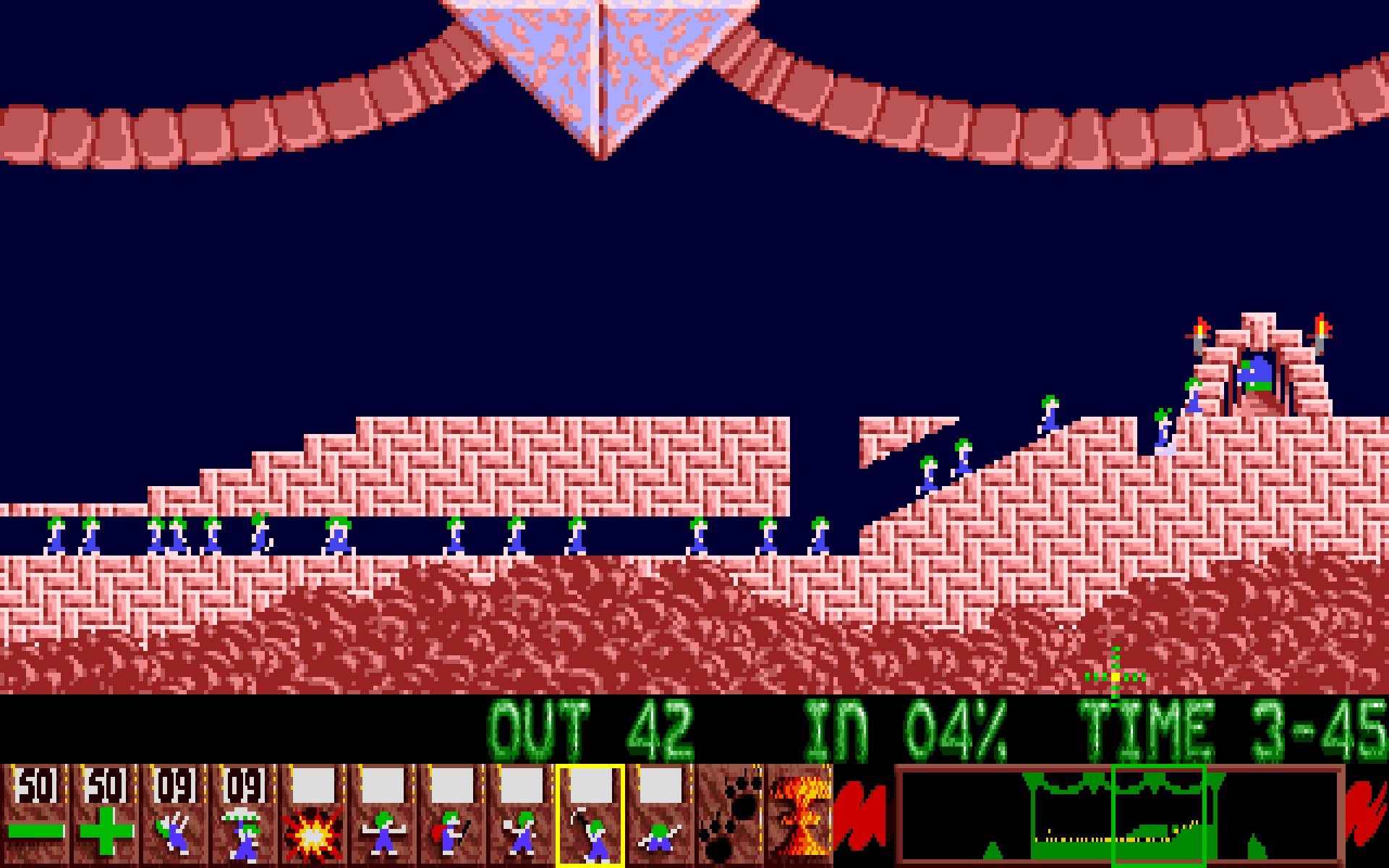 Da jeg fikk en merkelig trang til å spille Lemmings en fredagskveld for noen uker siden, trodde jeg at jeg kom til å gi meg ganske raskt. De første 10-20 nivåene i spillet kan jeg sånn cirka utenat, og dermed passet de ganske godt å spille i den formen man gjerne kan være i utover fredagskvelden, men derfra stiger vanskelighetsgraden raskt. Jeg husker ikke helt hvor langt jeg kom akkurat den kvelden, men spillingen ga mersmak. Så jeg endte opp med å spille videre dagen etter. Og dagen etter den igjen. Og plutselig hadde jeg passert det punktet der jeg husket brettene fra før.