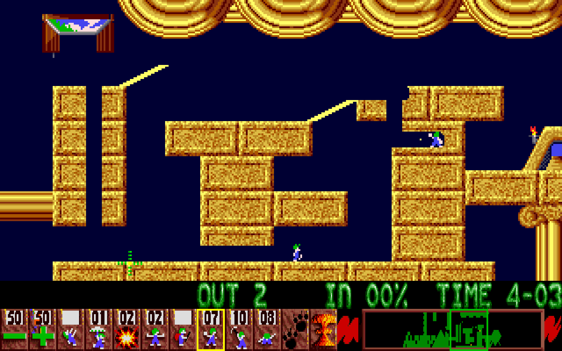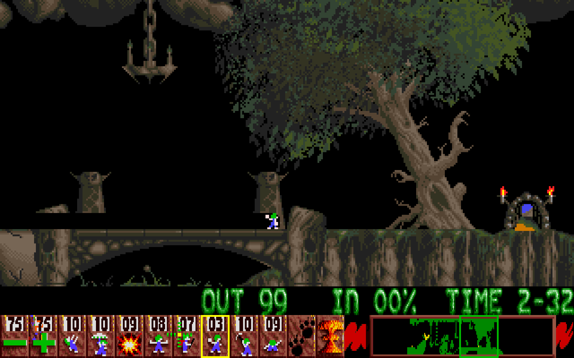Lemmings ser dessuten fortsatt ganske flott ut. Pikselkunstnerne Mike Dailly og Gary Timmonds klarte å gi de små krypene store mengder personlighet, på tross av at hver lemen kun bruker 8×10 piksler på skjermen og gåanimasjonen deres totalt består av åtte bilder. Nivåene er også visuelt appellerende, med variert grafikk og massevis av animerte elementer. En av tingene jeg alltid har elsket med Lemmings er hvor ofte det dropper skarpe kanter og åpenbare geometriske former til fordel for langt mer organiske miljøer.