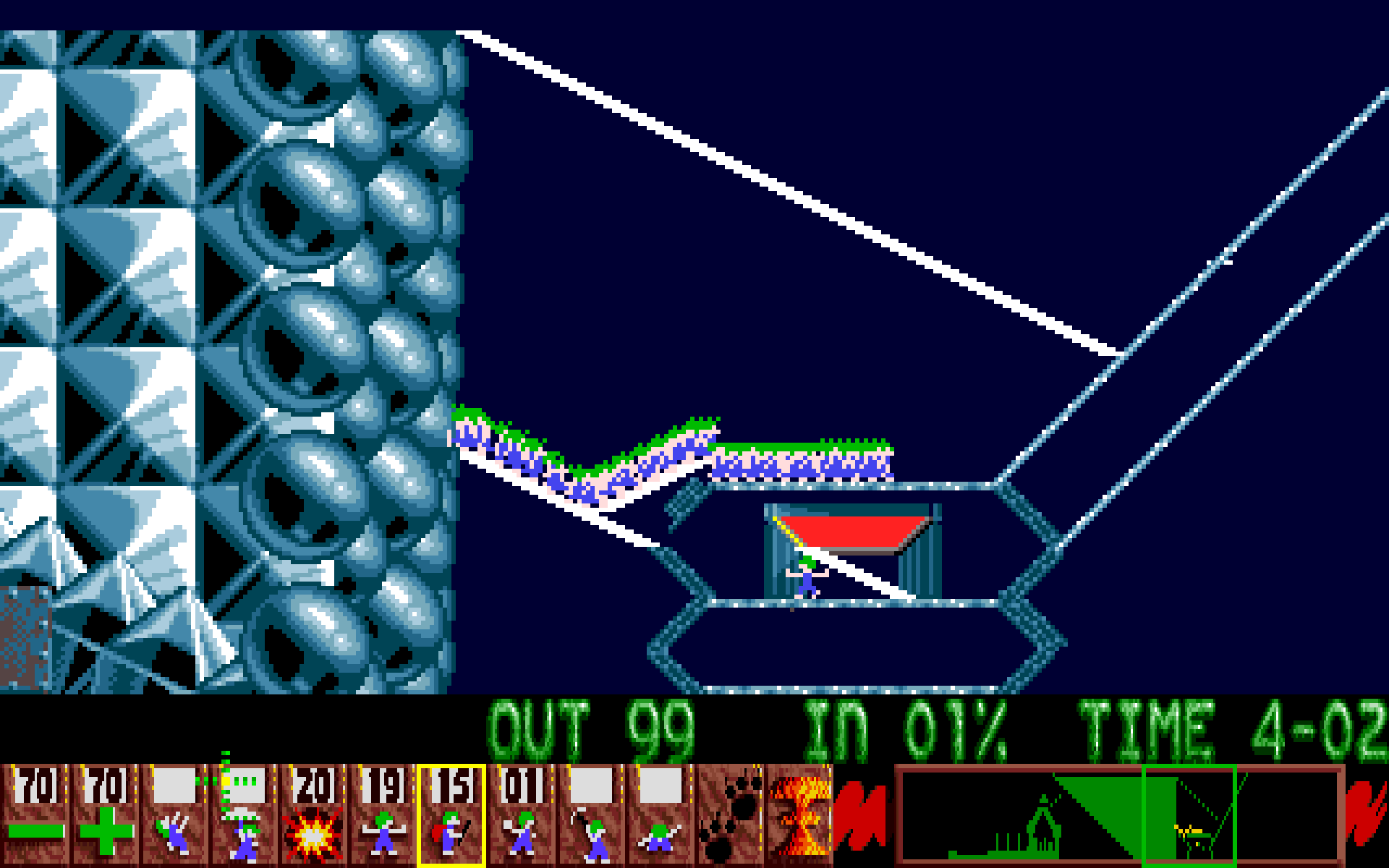 Jeg ble også imponert over hvor variert dette spillet er. Totalt har det altså 120 enspillernivåer, og selv om det blir litt repetisjon underveis, med ideer som gjentas i ulike former utover i spillet, rekker ingen av dem å bli gamle. Faktisk disker det stadig opp med friske og overraskende ideer, som brukes én enkelt gang og så aldri kommer tilbake. En av mine tidlige fordommer mot Lemmings var at det ikke kom til å være nødvendig å spille så voldsomt mye mer enn halvparten for å i praksis oppleve alt av konsepter og ideer det har å by på – dette viste seg definitivt å ikke stemme.