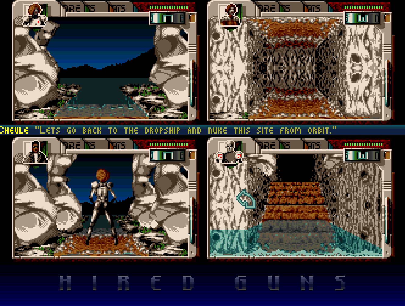 Da jeg startet å spille Hired Guns for cirka tre måneder siden, var målet at jeg skulle fullføre det. Den bragden har jeg også klart, men tro meg: Det var like før jeg ga opp flere ganger. Det er ikke bare fordi Hired Guns er et stort spill, men også fordi det rett og slett kan oppleves tungt å spille i lang tid av gangen. Jeg skal ikke være for skråsikker her, men min følelse er at hvis jeg hadde klart å sette meg inn i spillet da det kom for 25 år siden, hadde jeg slukt det rått. Men slik det er nå, opplever jeg en del friksjon.