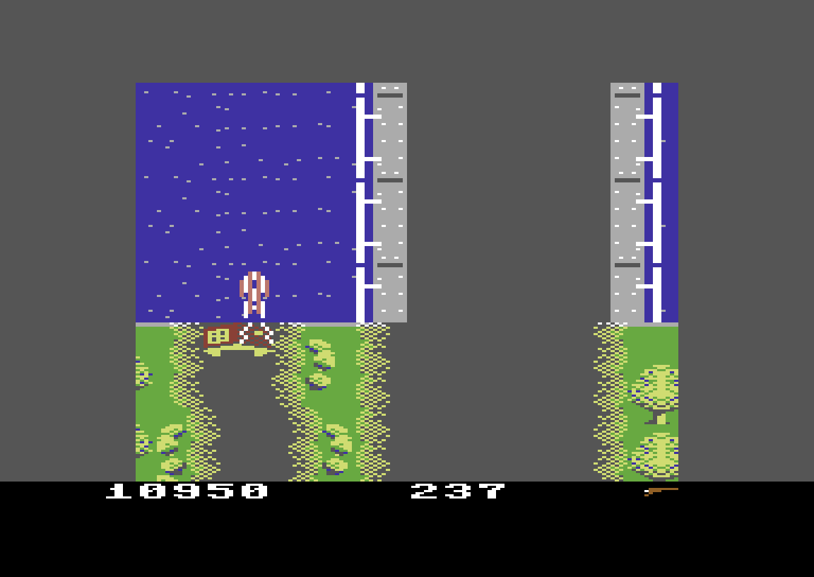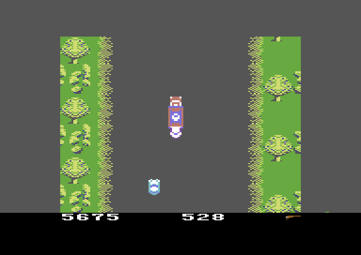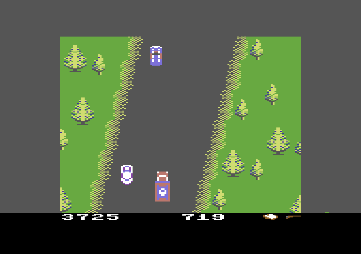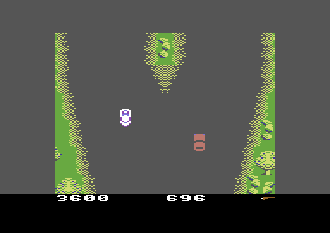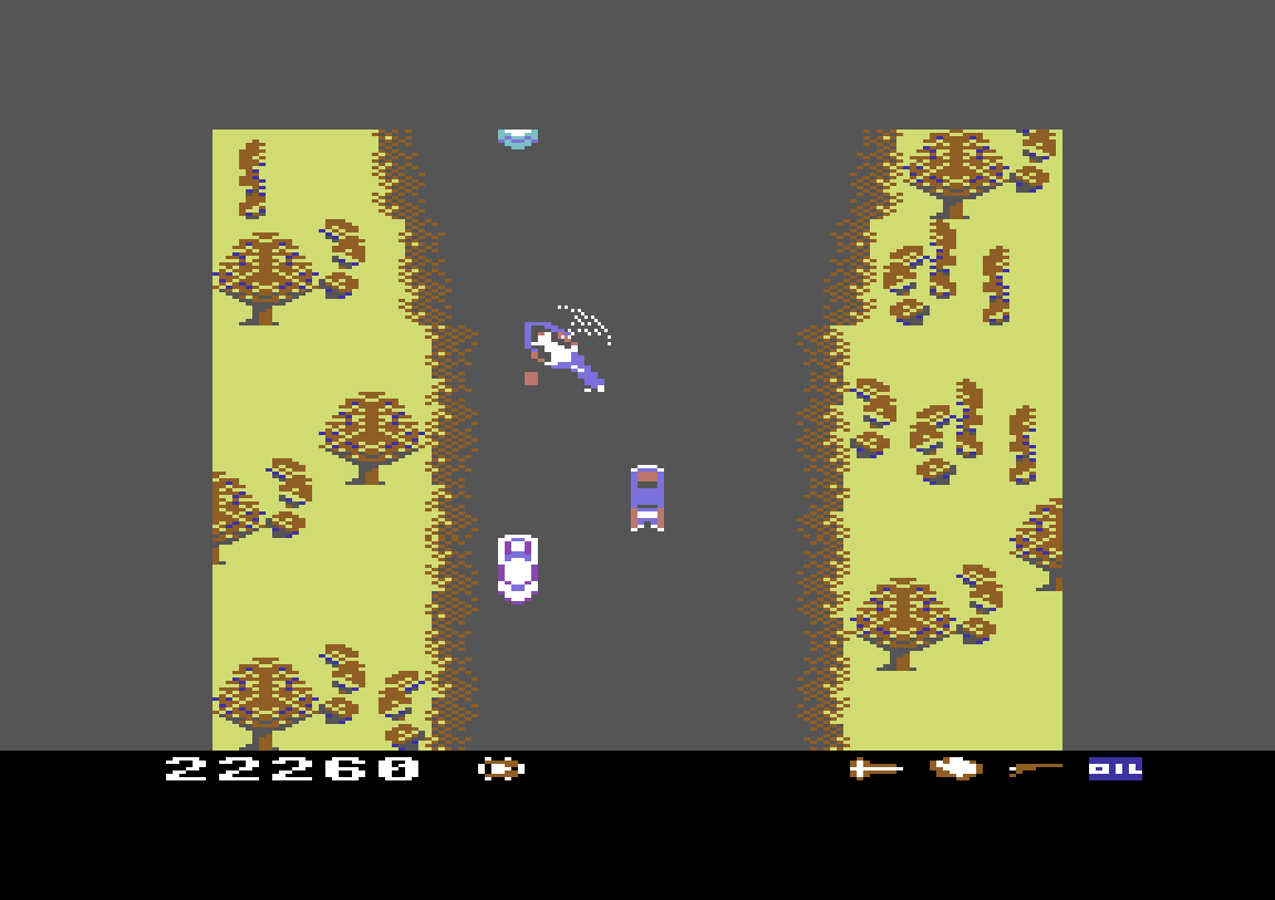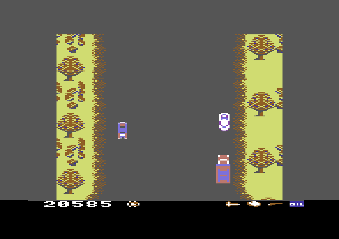 Jeg spilte altså Spy Hunter på Commodore 64, som fikk en forenklet men likevel solid utgave av arkadespillet. Det var aldri et spill som holdt meg fast i time etter time, men det var gøy hver gang jeg startet det. Faktisk er det fortsatt artig å ta frem en gang av og til, og dermed et godt eksempel på at det ofte enkle, men finslipte spillmekanismer som tåler tidens tann best. Her er noen bilder fra Commodore 64-versjonen: