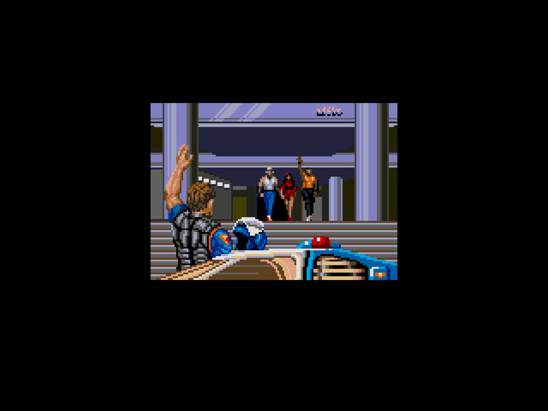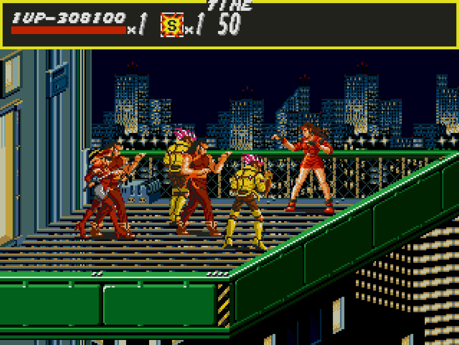 Etter å ha blåst liv i spillkassetten (bokstavlig talt), og puttet den i MegaDrive’n, starter det opp. Det første vi hører er en behagelig techno-beat fra lydsporet, og med et bilde av byen i bakgrunnen får vi en introduksjon om spillets setting. Byen, som ikke er tildelt navn, har blitt tatt over av en gjeng med pøbler og deres leder, Mr X.