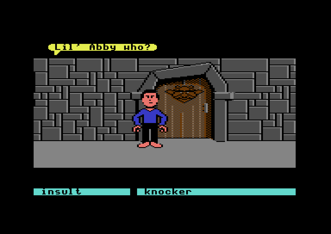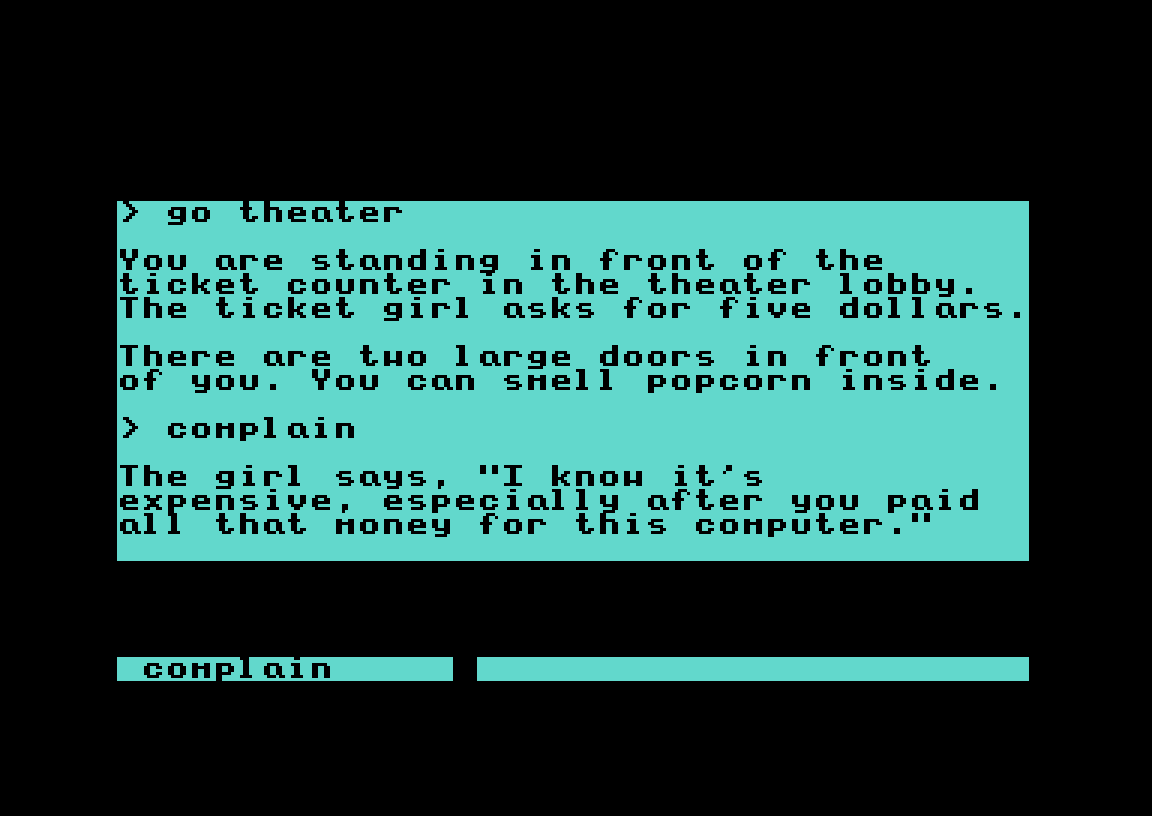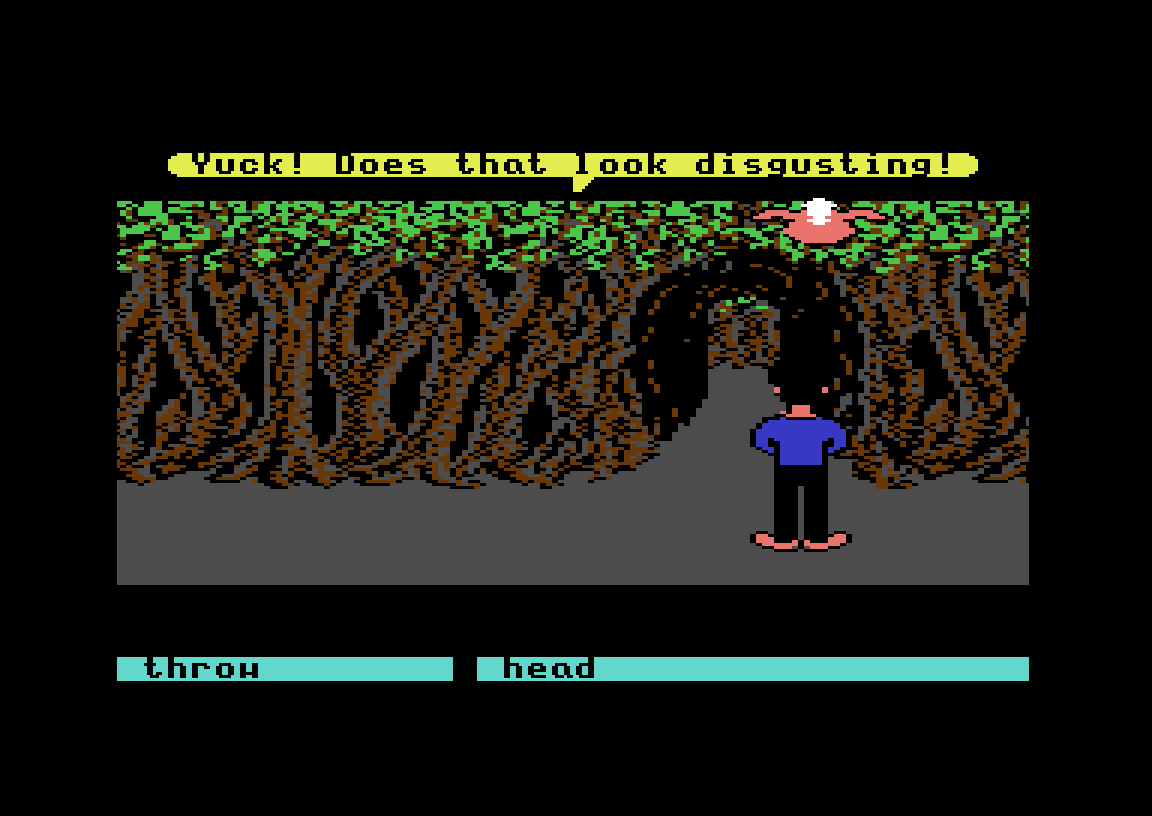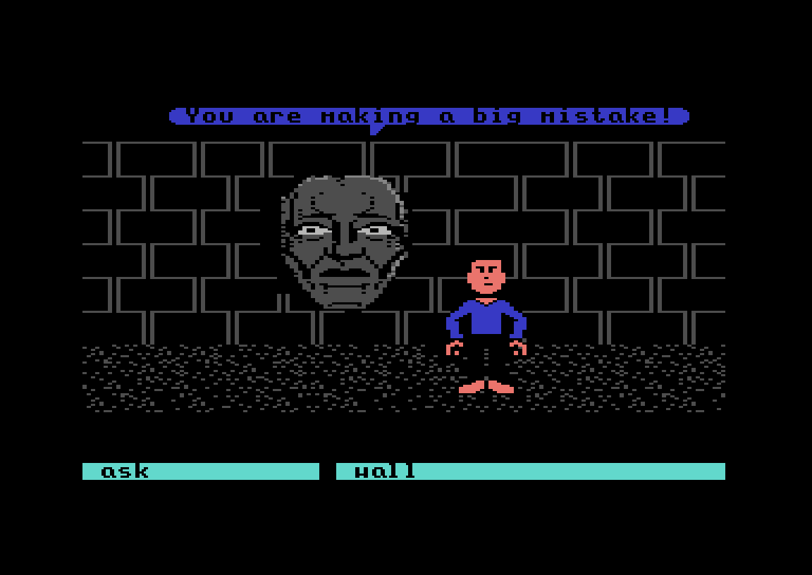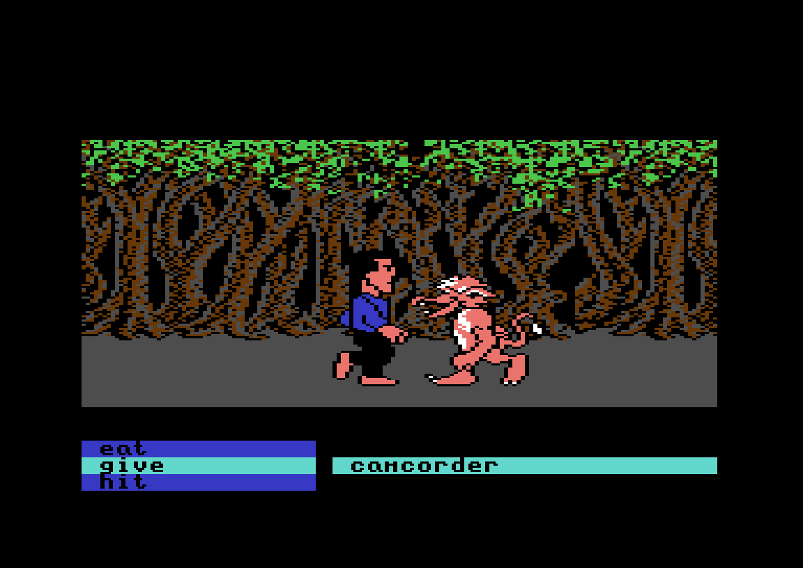 Eventyrspillet Labyrinth, som kom til Commodore 64 og Apple II i 1986, har et lignende øyeblikk. Det hele starter som et vanlig teksteventyrspill, skjønt med et grensesnitt der man velger ord i stedet for å skrive dem. Du spiller «deg selv» – det første du gjør er å skrive inn navn, kjønn og favorittfarge – og målet i starten er rett og slett å se filmen Labyrinth på kino.