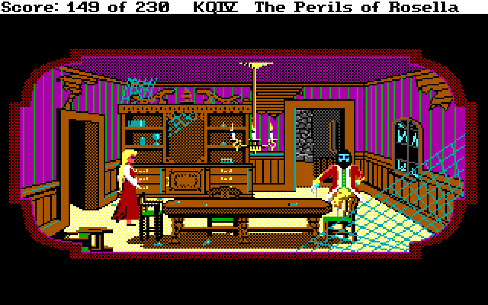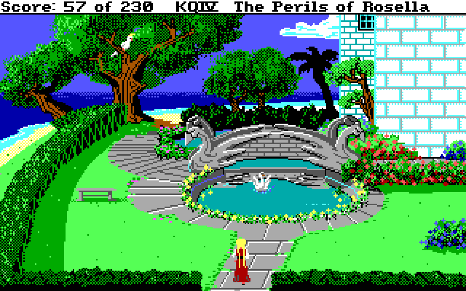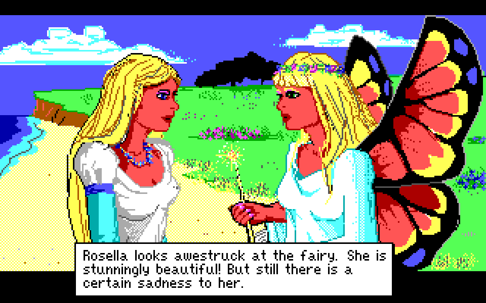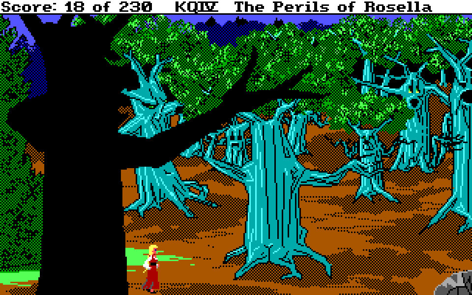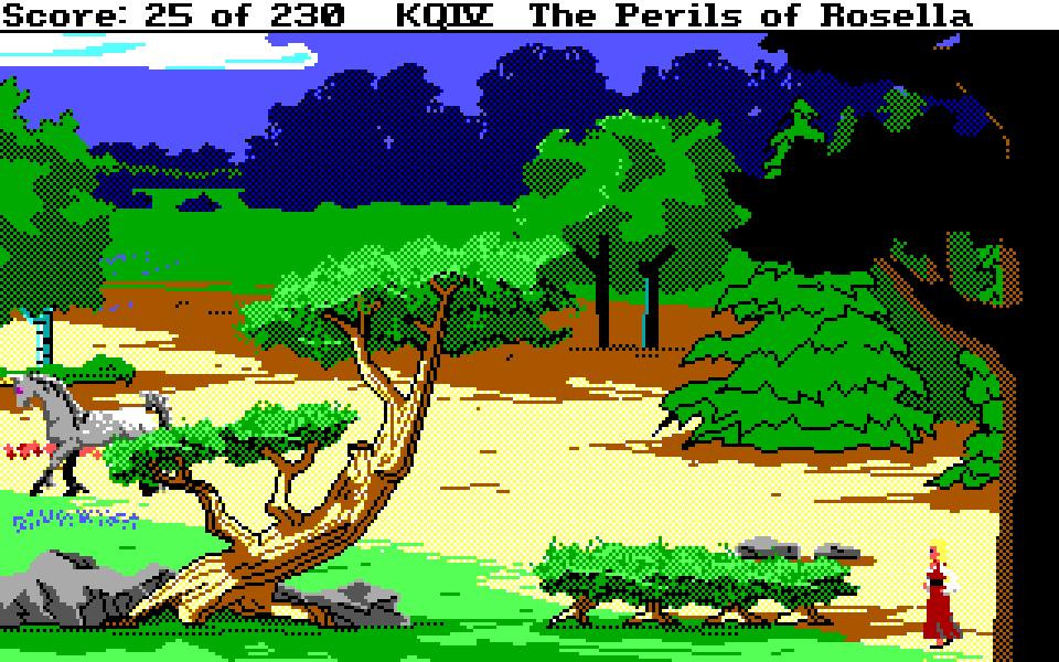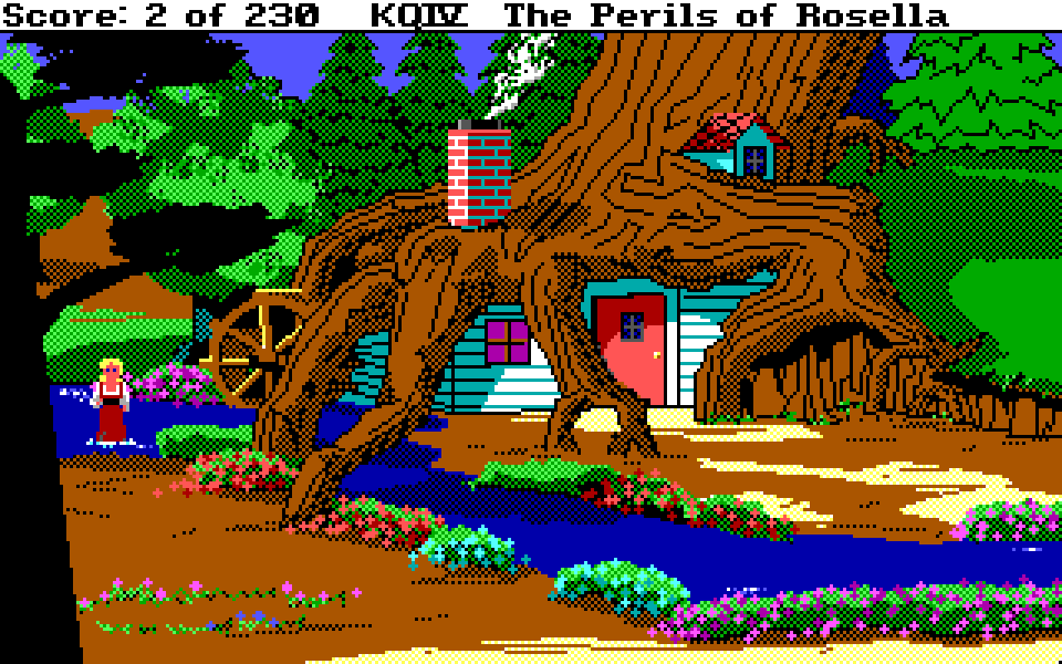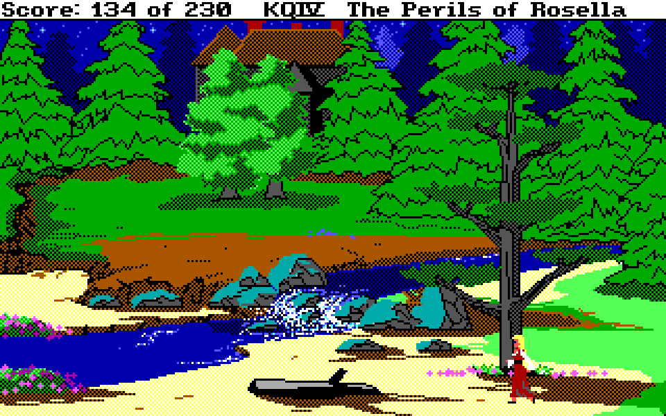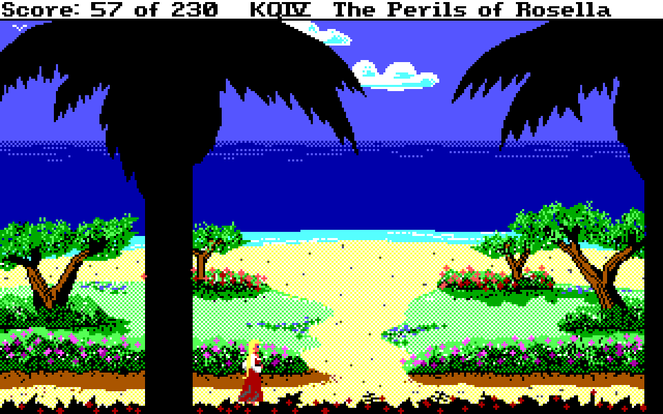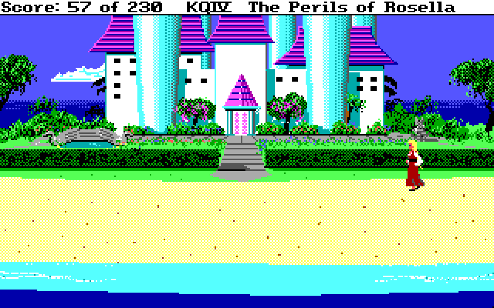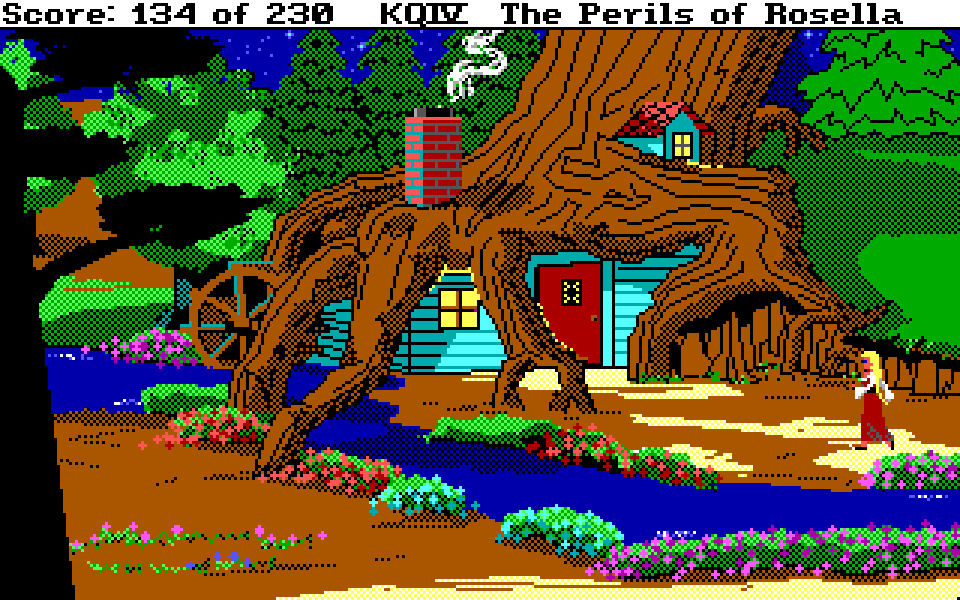Med sin nye motor representerer King’s Quest IV: The Perils of Rosella et massivt teknologisk steg fremover for både King’s Quest-serien og Sierra selv. Grafikken fikk et skikkelig ansiktsløft, der oppløsningen ble doblet fra 160×200 til 320×400, og lyden gikk fra enkle PC-pip til opp til 32-kanalers musikk av profesjonelt kaliber takket være tidlig støtte for lydkort. For Sierra som spillutvikler snakker vi altså om et teknologibyks som kan sammenlignes med noen av konsollverdenens største generasjonshopp, men som vi vet handler spill om mer enn teknologi. Var Sierra og sjefsdesigner Roberta Williams også villige til å tenke nytt rundt spilldesign, eller ville de bare fortsette som før?