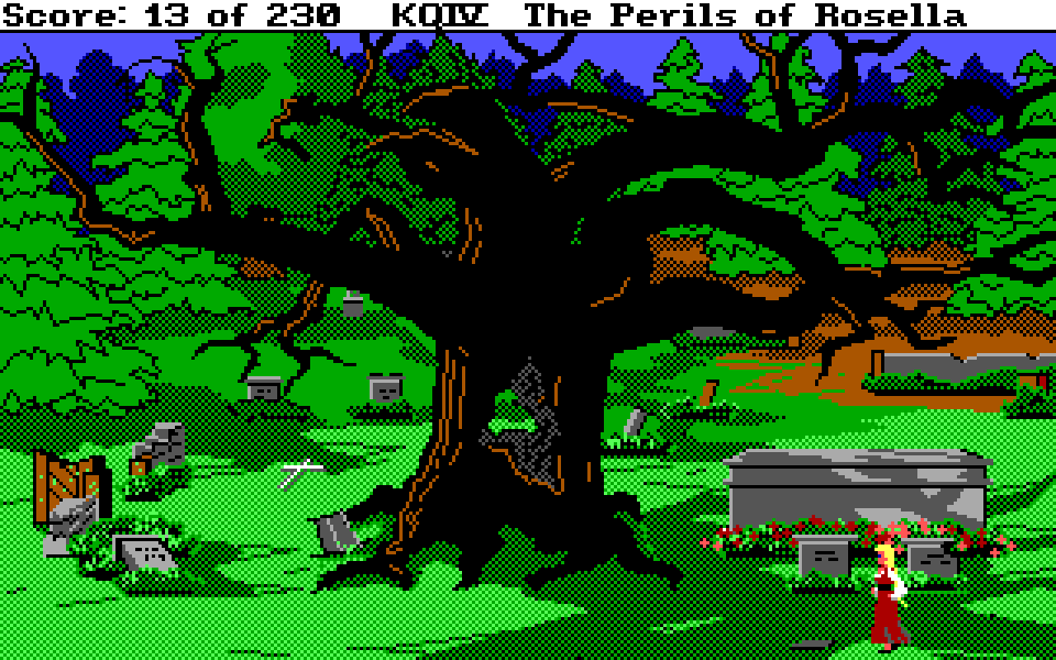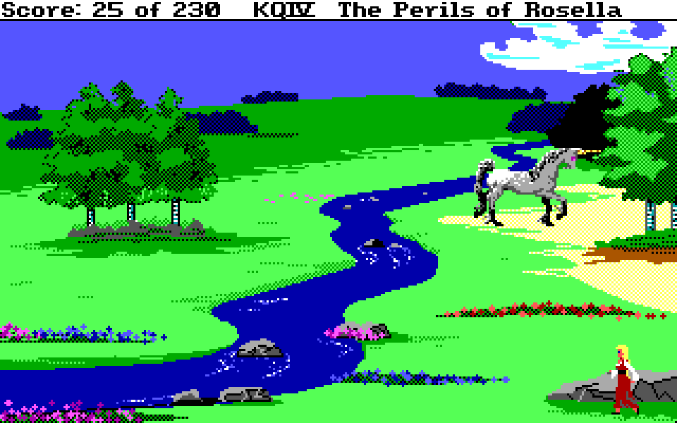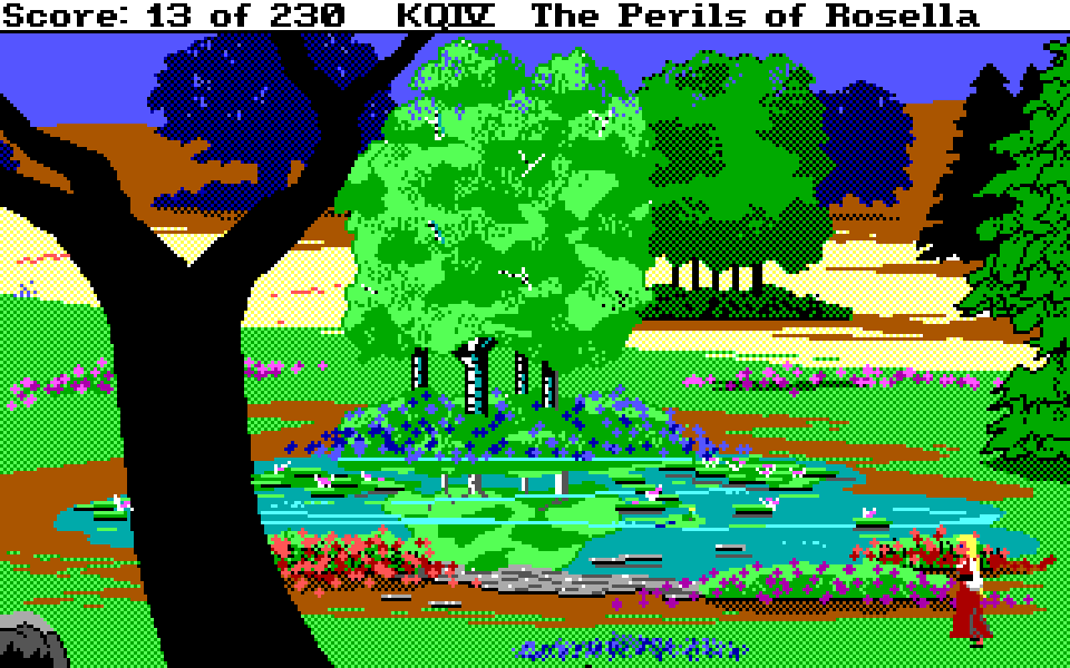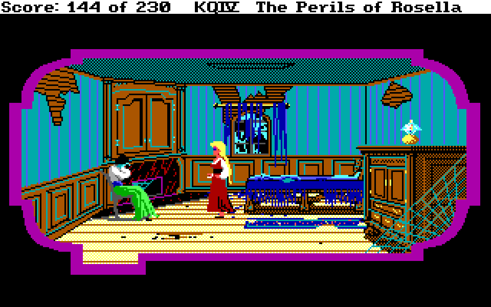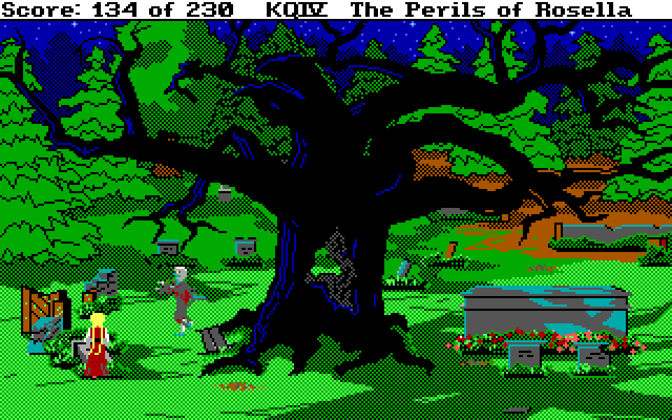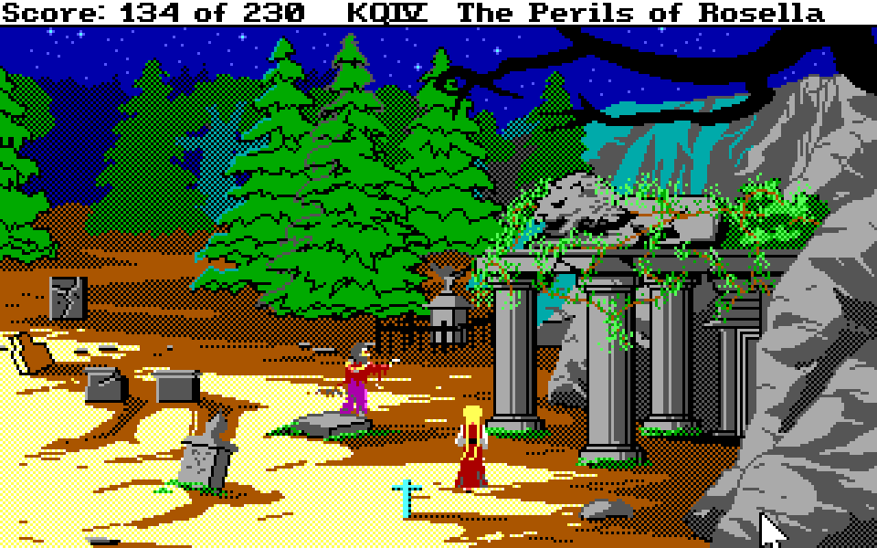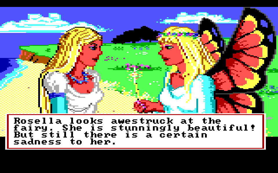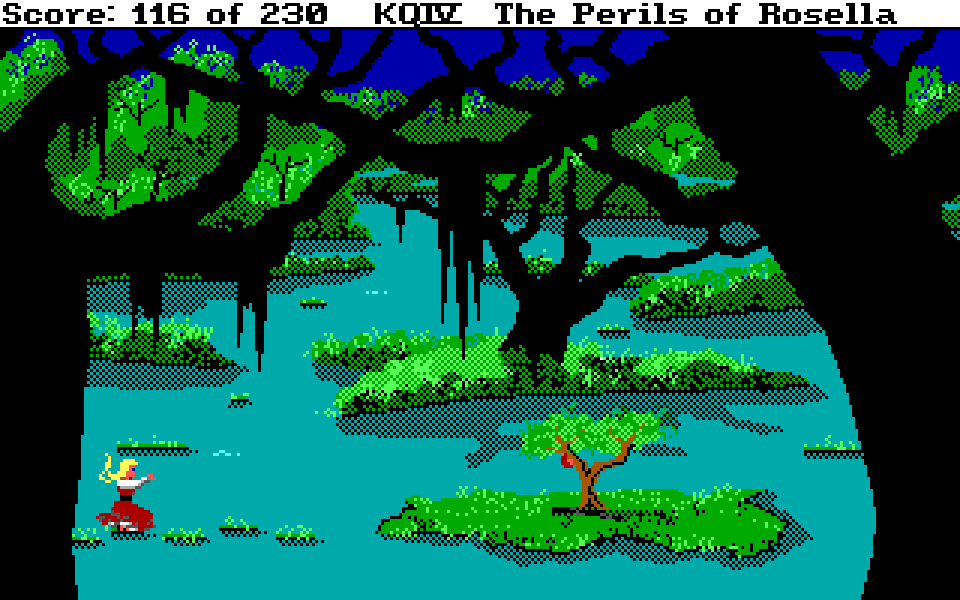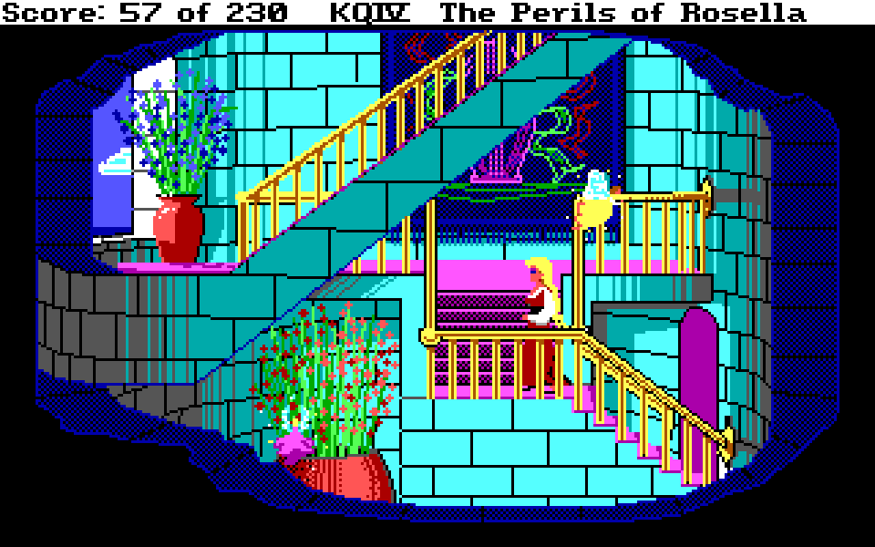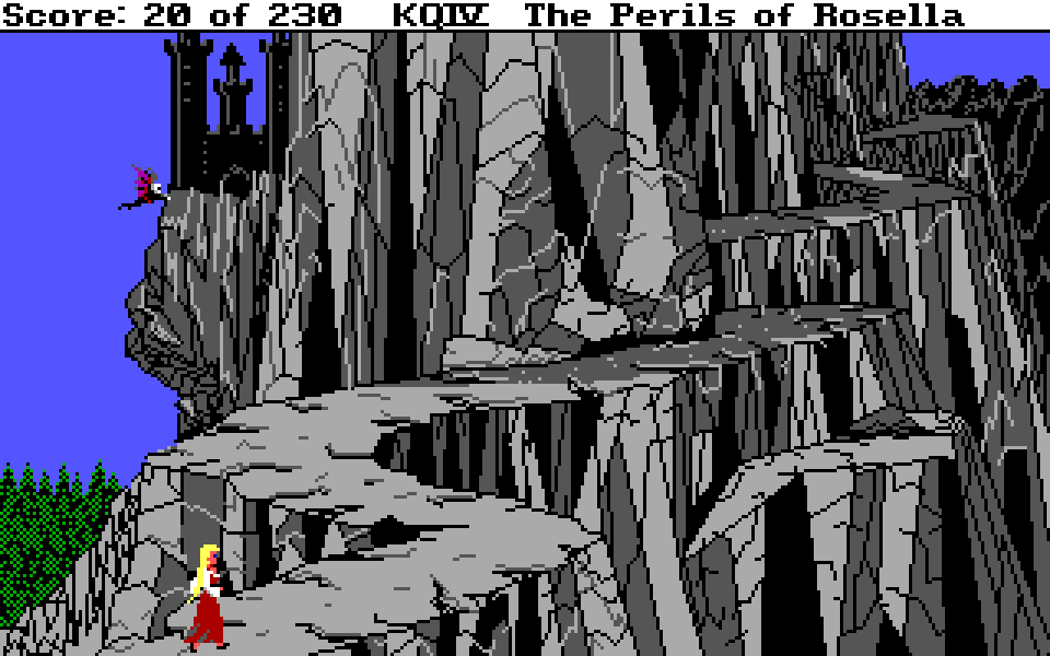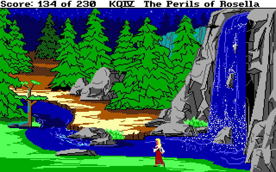 Med sin nye motor representerer King’s Quest IV: The Perils of Rosella et massivt teknologisk steg fremover for både King’s Quest-serien og Sierra selv. Grafikken fikk et skikkelig ansiktsløft, der oppløsningen ble doblet fra 160×200 til 320×400, og lyden gikk fra enkle PC-pip til opp til 32-kanalers musikk av profesjonelt kaliber takket være tidlig støtte for lydkort. For Sierra som spillutvikler snakker vi altså om et teknologibyks som kan sammenlignes med noen av konsollverdenens største generasjonshopp, men som vi vet handler spill om mer enn teknologi. Var Sierra og sjefsdesigner Roberta Williams også villige til å tenke nytt rundt spilldesign, eller ville de bare fortsette som før?
