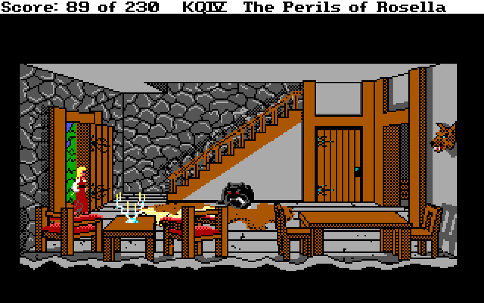 Og hva med alle de grusomme trappene der ett eneste feilsteg sender deg hodestups til din død? Rosella kan ri på enhjørninger, svømme over et helt hav og er en virtuos på både lutt, panfløyte og orgel. Men en enkel vindeltrapp er i femti prosent av tilfellene for mye for henne å takle. Var det aldri noen som spurte seg om spillerne egentlig syntes det var så gøy å måtte lagre spillet foran hver eneste trapp?