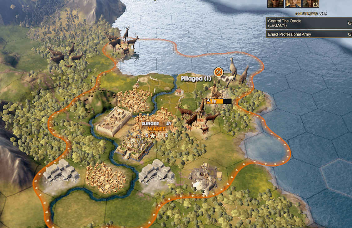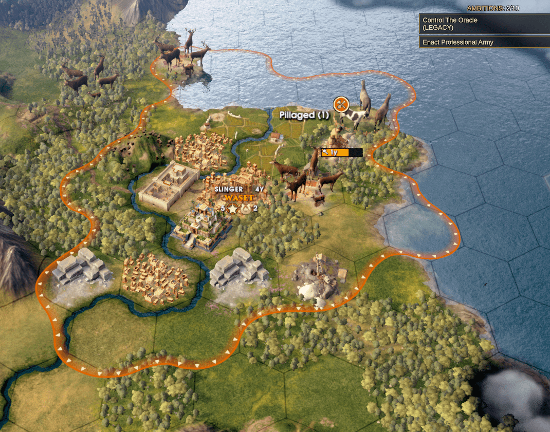 Spillet varer i 200 omganger, eller 200 år, og det er per nå to måter du kan vinne på. Du kan enten være førstemann til å fullføre ti ambisjoner, som kan være å bygge pyramidene eller implementere en profesjonell hær. Eller du kan få flest antall poeng ved slutten av spillet. Du får ett poeng for hver by du kontrollerer, ett poeng for hvert verdensunder og ett poeng for hver by du eier med legendarisk kultur. Jeg antar du også kan vinne ved å erobre alle andre sivilisasjoner, men det har jeg ikke prøvd. Jeg er nok av den typen som pludrer med min egen sivilisasjon og kriger litt nå og da.