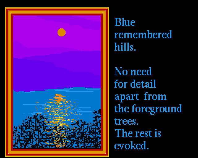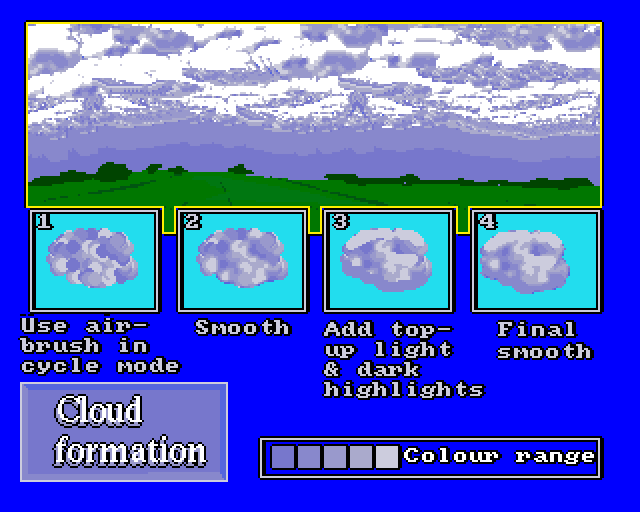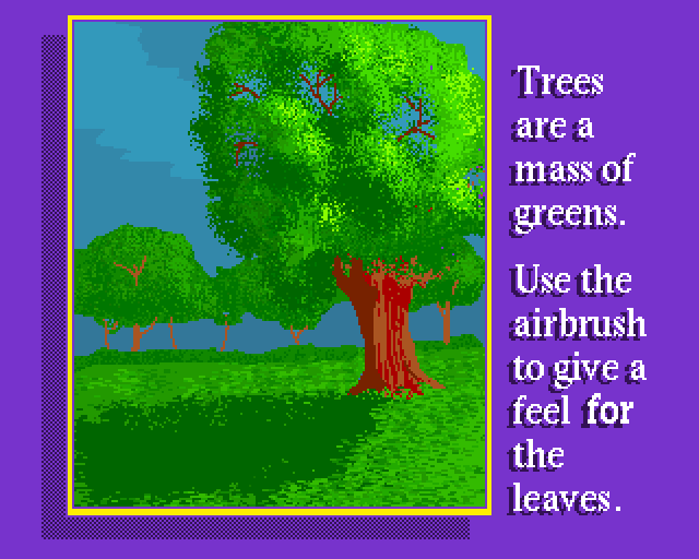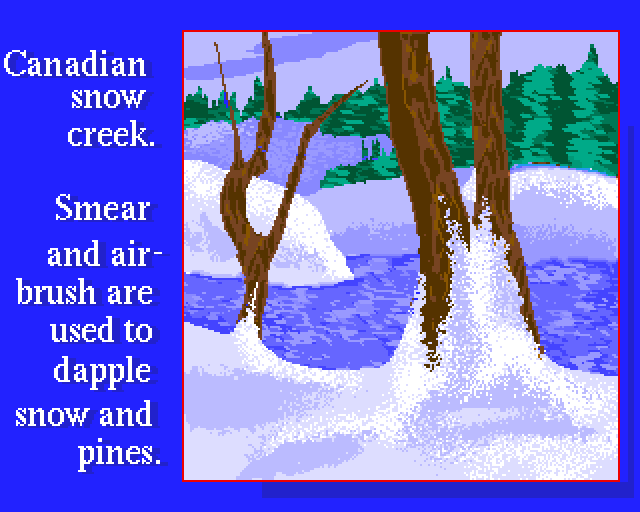 En håndfull bilder som vises i rekkefølge, inkludert noen med hendige pixel-art-tips (disse akkompagnerer en Deluxe Paint-guide i bladet). Programmet tillater deg også å lage egne slideshows. Her er bildene: