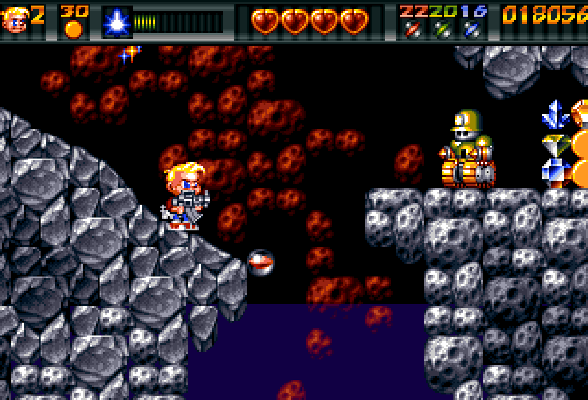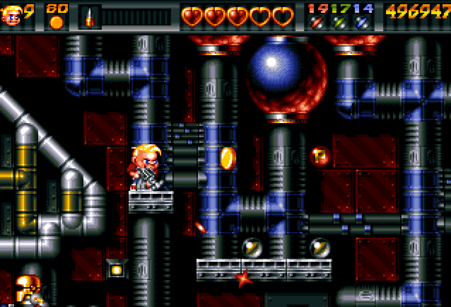 Dette er et av flere områder der Ruff ‘n’ Tumble bruker klassiske «risiko versus belønning»-mekanismer for å dytte spillerne til å ta sjanser. Jo nærmere du er å miste et våpen, jo mer fristende er det å buse frem for å grabbe mer energi, og jo større er dermed risikoen for at du selv får et ublidt møte med en fiende eller et projektil.