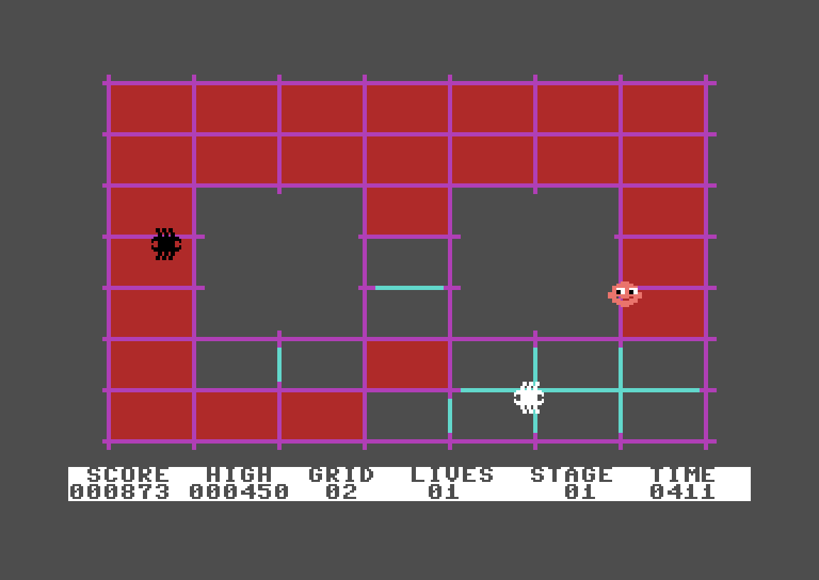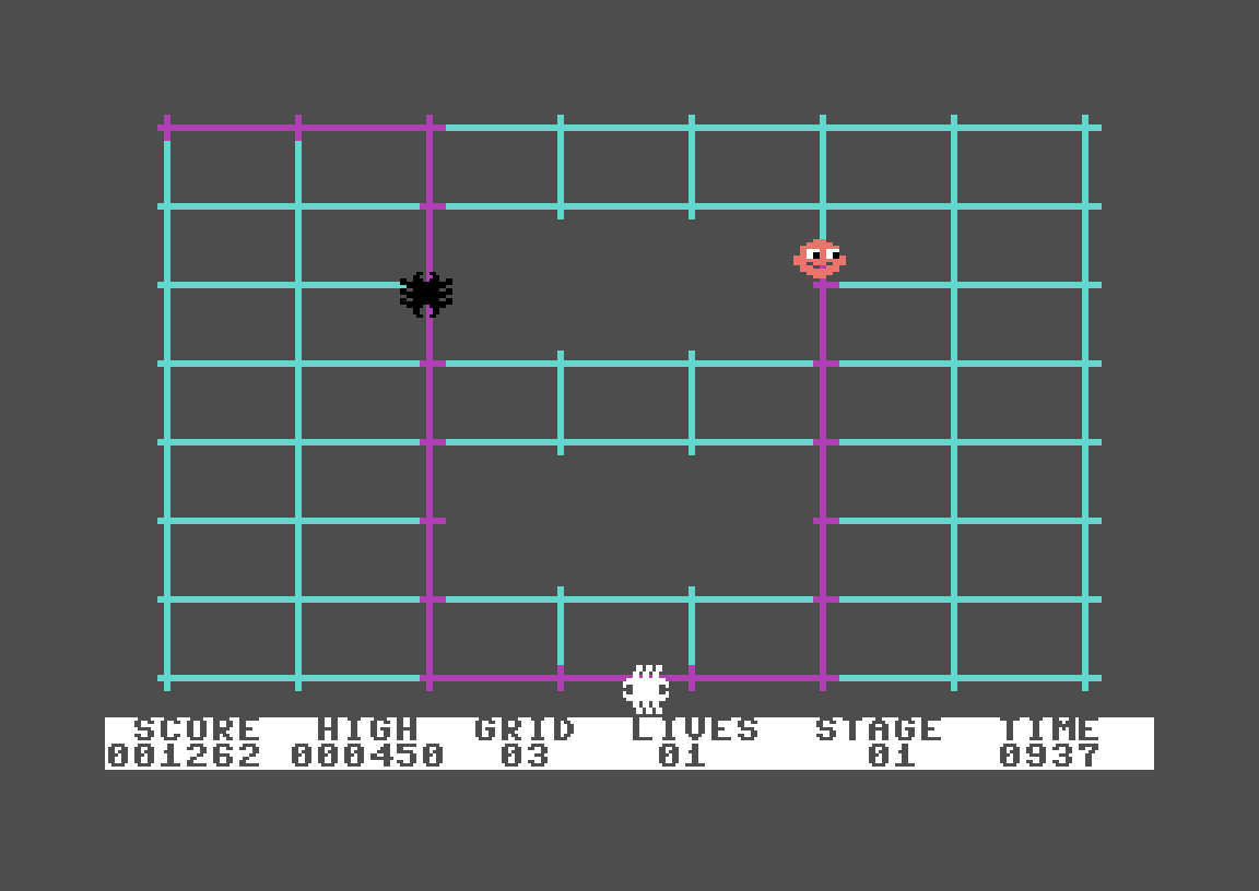 Hvis du har spilt arkadespillet Amidar fra Konami, vet du nøyaktig hvordan det fungerer. Og siden Super Gridder bare er én av de mange klonene Amidar fikk, er det godt mulig du uansett har spilt noe i samme gate. Jeg har i alle fall vært innom flere slike spill i årenes løp, og jeg har en følelse av å ha spilt dette også.