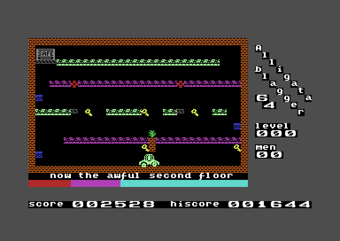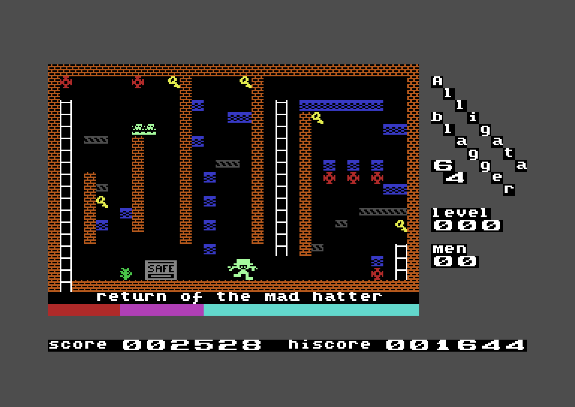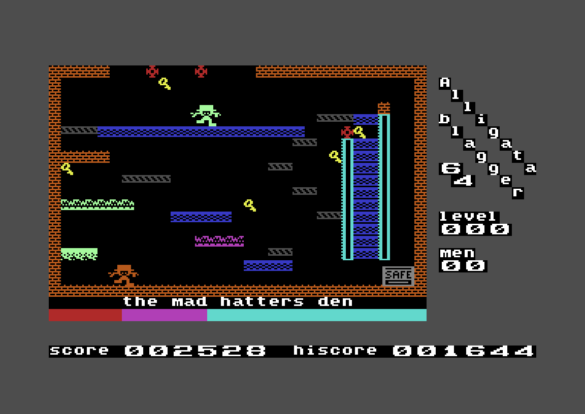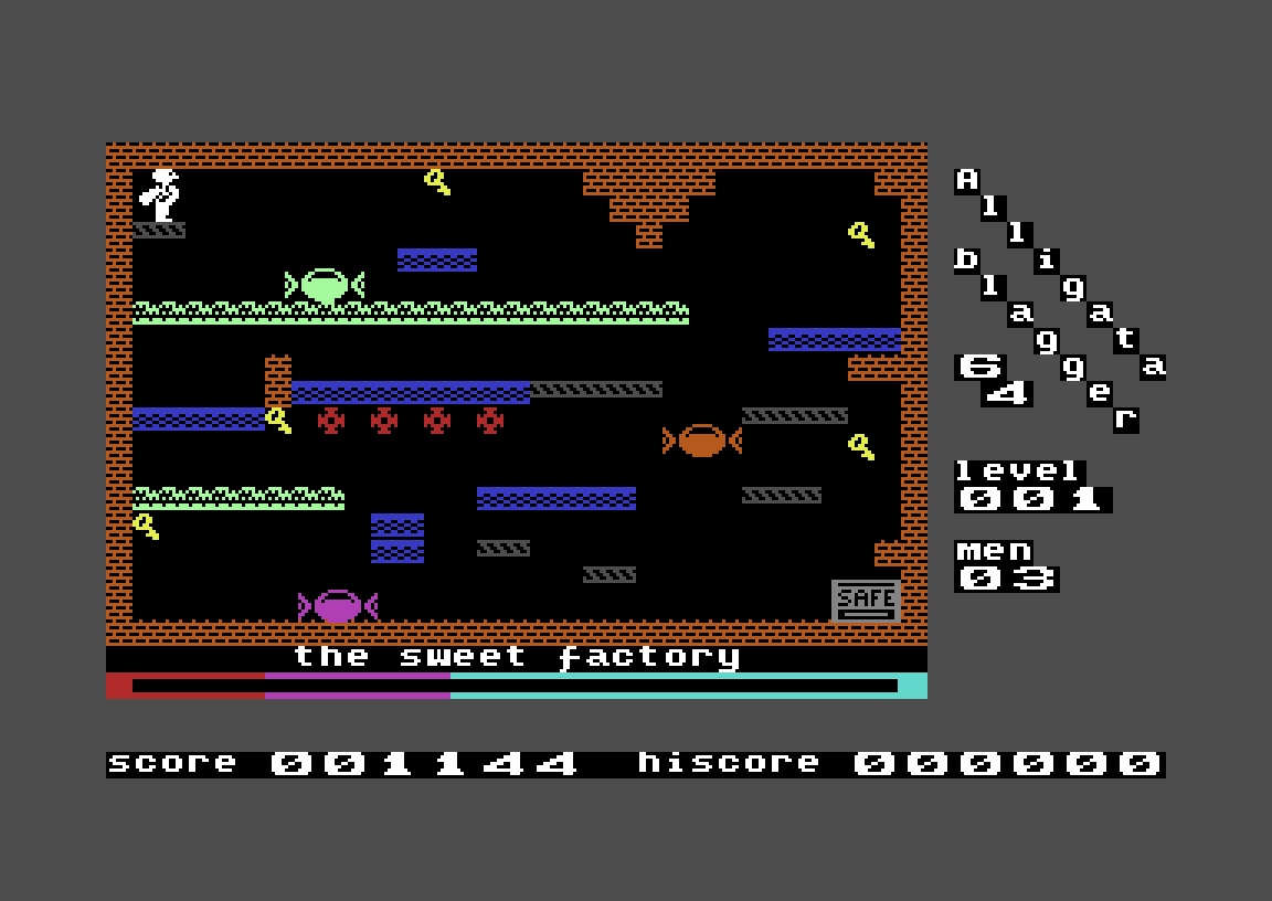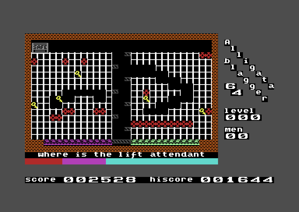 Her har vi et plattformspill av den typen britene likte så godt tidlig på åttitallet. Det fungerer omtrent som Manic Miner, og siden vi med tiden har havnet i en verden der folk flest ikke har peiling på hva Manic Miner er, bør jeg vel si litt mer. Hvert brett består av én skjerm, typisk med et spesielt tema. Her må du plukke opp en viss mengde gjenstander (nøkler, i dette tilfellet) for å låse opp utgangen, samtidig som du unngår vandrende fiender eller andre ting som gjør skade. «Gjør skade» vil si «dreper deg umiddelbart». Andre faste innslag i sjangeren er samlebånd og gulv som går istykker når du beveger deg over dem. Å falle litt for langt er selvsagt også dødelig.