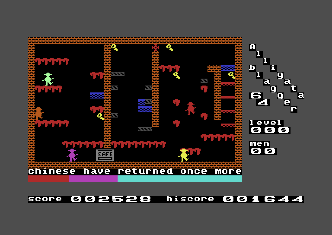 Jeg har aldri hatt sansen for Blagger, men jeg ga det en sjanse. På samme måte som Manic Miner, er Blagger et produkt av sin tid, en tid som var over for lengst da jeg selv fikk Commodore 64, og jeg forstår at folk som spilte det da det var nytt har gode minner fra det. Jeg kan også gi det en viss skryt for den åpenbare variasjonen, og selv om vanskelighetsgraden er høy er den ikke så absurd at man ikke kan ha det artig med spillet en liten stund (selv om jeg nekter å tro at noen med alle skruene på plass har orket å fullføre det uten å jukse).