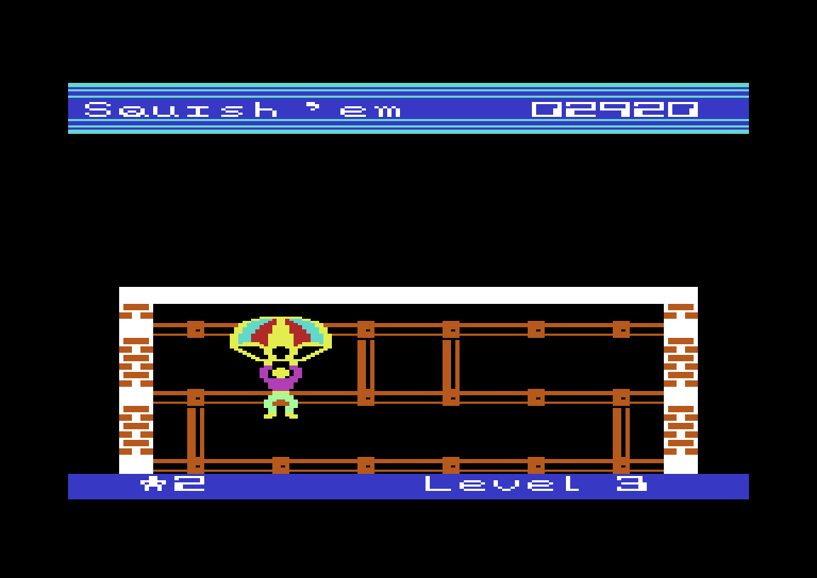Squish ’em minner på en måte litt om forrige Sirius-spill, Fast Eddie. Konseptet er superenkelt, men håndtverket er supert, og resultatet er gjennomtrivelig selv om det ikke er særlig minneverdig (jeg hadde helt glemt at spillet eksisterte, men visste umiddelbart at jeg hadde spilt det før da jeg startet det).