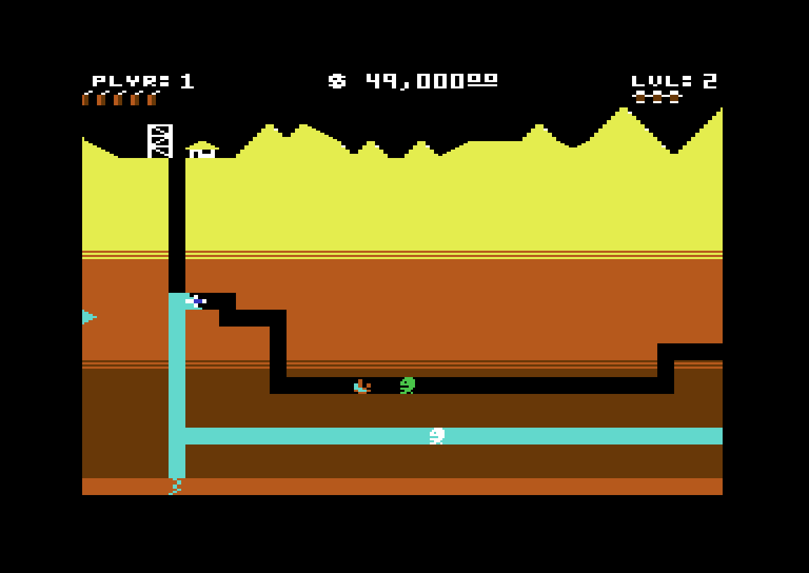 Okay, dette ble nok en beskrivelse av den kronglete typen, som egentlig er unødvendig fordi jeg forhåpentligvis finner en video å legge inn i artikkelen. Men konseptet er i alle fall solid, og spillet er gøy. Siden det er du som til syvende og sist styrer nivået på vannet (ettersom det følger dine tunneler) må du hele tiden vurdere hvordan du kan få fatt i godsakene uten å samtidig gi vannet sjansen til å stige. Samtidig er du hele tiden under press, og må både handle og tenke kjapt.