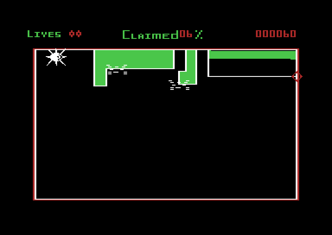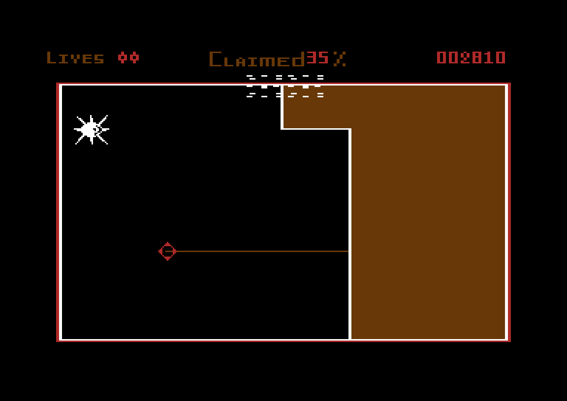 Rollerball er åpenbart inspirert av arkadespillet Qix, og handler kort sagt om å gjerde inne minst 75 prosent av skjermen mens man unngår å bli drept av fiender. Spillet minner ganske mye om et av favorittspillene mine på Commodore 64, nemlig Stix, som jeg også har skrevet en liten artikkel om. Rollerball er imidlertid ikke Stix. Det er treigt og oppstykket, og har i tillegg skikkelig irriterende lydeffekter. Dessuten har det en superkjedelig hovedfiende som mangler all dynamikken fra fienden i Qix og Stix.