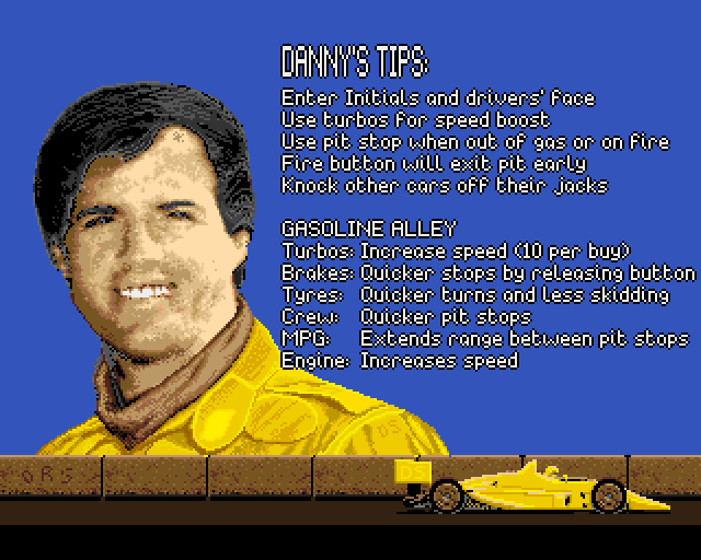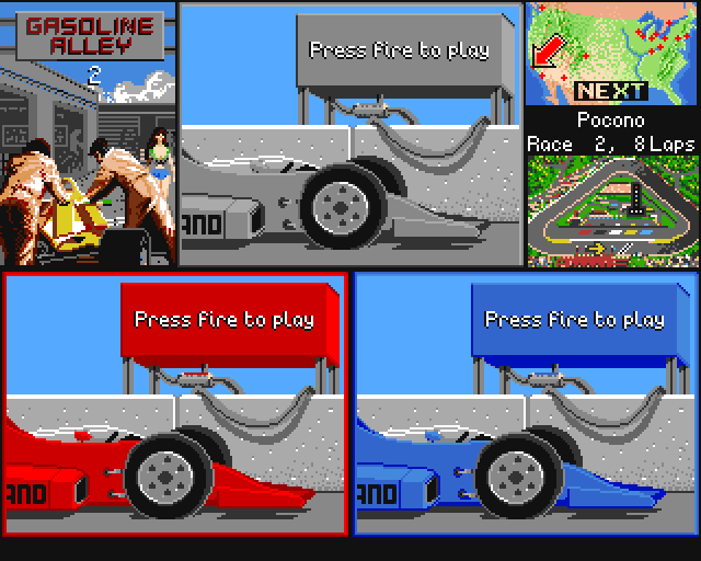 Demoen har kun én bane, Pocono, og mangler lyd. Antakeligvis er lyden fjernet for å gjøre plass på disketten, men det er som vanlig et litt dårlig valg, for det er når et spill er helt stille at man innser hvor viktig lyden faktisk er for opplevelsen. Jeg husker også at jeg likte musikken i fullversjonen veldig godt. Men okay, det er fortsatt artig nok med en kjapp runde. Jeg kommer på mystisk vis på andreplass, selv om det tar meg evigheter å få start på bilen. Så voldsomt fristet til å fortsette å kjøre rundt den samme banen er jeg dog ikke – dette er nok en av de enkleste i spillet, og det er ikke direkte utfordrende å komme seg rundt.