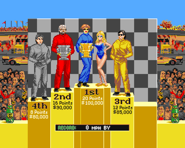 Om du kommer på podiet får du en pengepremie, som du kan bruke til å oppgradere bilen din, og så slippes du løs på neste bane (der motstanderbilene også er litt oppgraderte). Opp til tre spillere kan spille samtidig på Amiga-versjonen, mens arkadeoriginalen hadde støtte for fire.