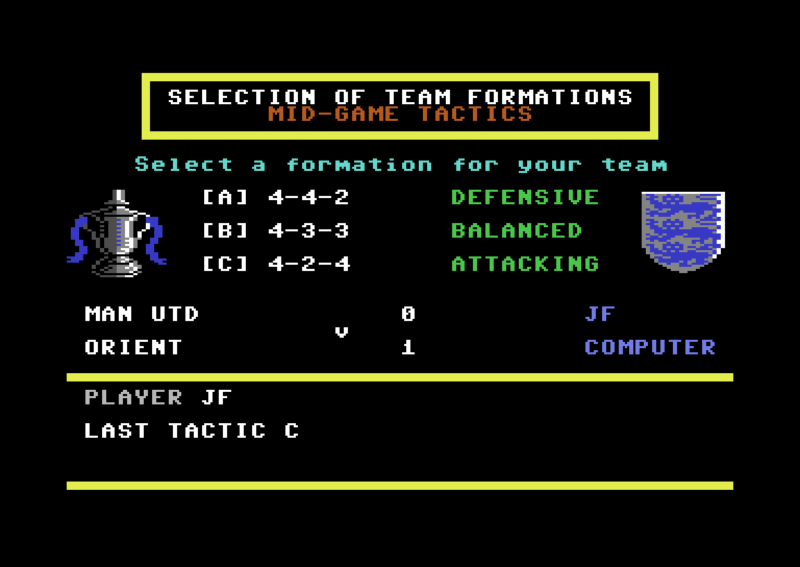 Så gjentas prosessen runde for runde, helt til runde fire der du også får mulighet til å endre formasjon etter 45 minutter om du ønsker det. Fra runde fem må du i tillegg svare på et fotballfaglig spørsmål foran hver runde («førstevalget for straffespark mister selvtilliten, vil du a) gi ham mer øvelse, b) be ham skjerpe seg eller c) gi jobben til noen andre»). Fra runde seks får du velge taktikk fire ganger i løpet av kampen, og du får også velge om du skal bytte (ikke-spesifiserte) spillere midt i andre omgang. I semifinalen må du svare på to fotballfaglige spørsmål, og i finalen … vel, det vet jeg ikke, for mitt siste lag (Sheffield Wednesday) røk ut i semien.