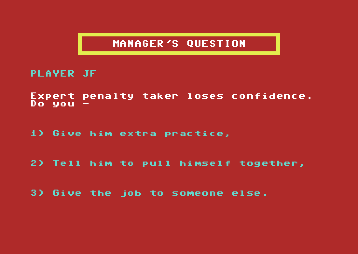Så, okay. «Managerspill» var kanskje å ta litt i, selv om det jo ble litt mer involvert etter hvert. Jeg kan se for meg at det er artig tidsfordriv med en kamerat eller to og noen øl, der hver velger sine favorittlag og ikke tar det hele så seriøst. Men selv foretrekker jeg å spille World Class Leaderboard om jeg skal kombinere sosial drikking med Commodore 64-spill, så jeg får ikke sjekket. Alene var det … meh. Ikke det kjedeligste jeg har gjort, men ikke så fristende å gjøre igjen.