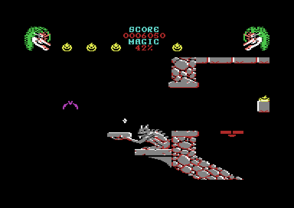 Cauldron II er altså et typisk plattform-/actioneventyr i samme stil som mange av åttitallets stortitler. Du har et svært (og jeg mener svært) hus å utforske, og en haug av gjenstander som må finnes. Huset er delt inn i individuelle skjermer, hver med fiender og andre greier som må unngås, og plattformer som må hoppes på.