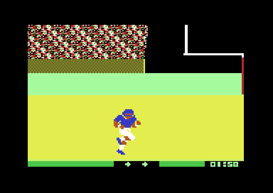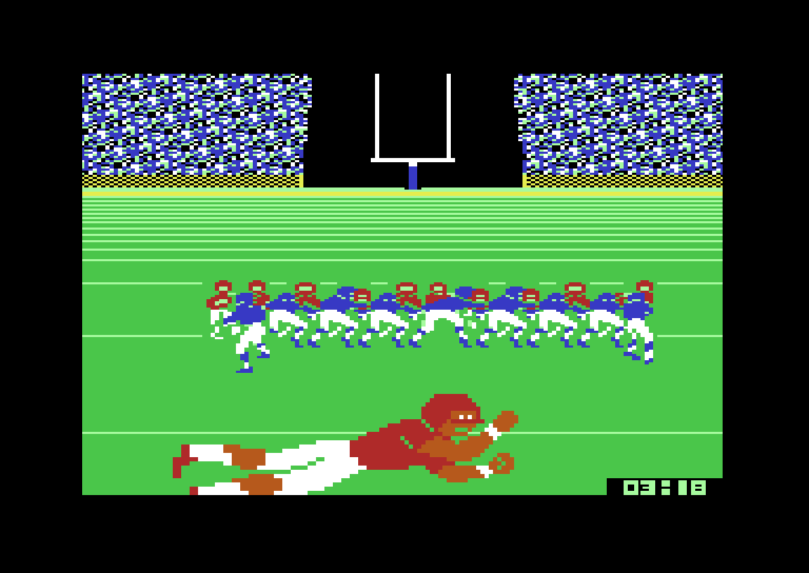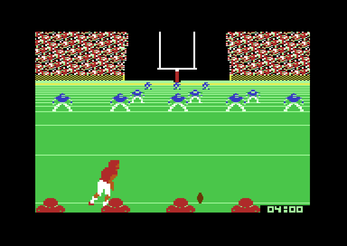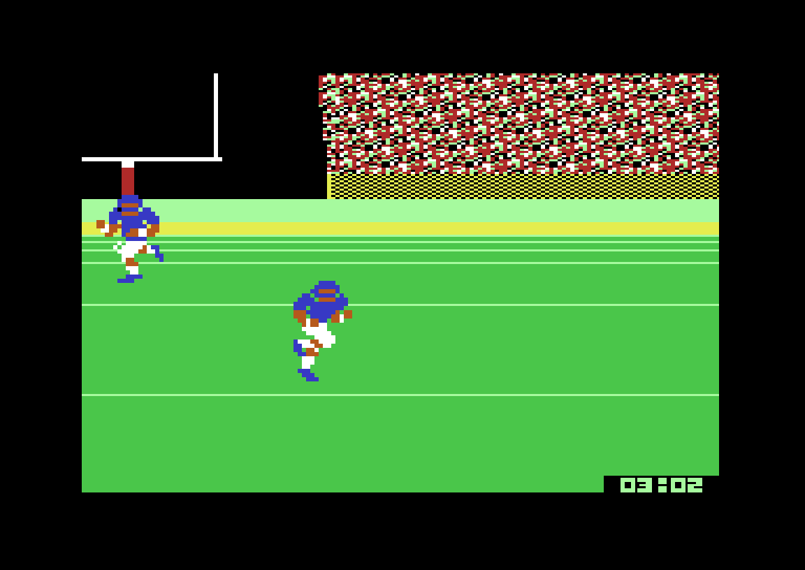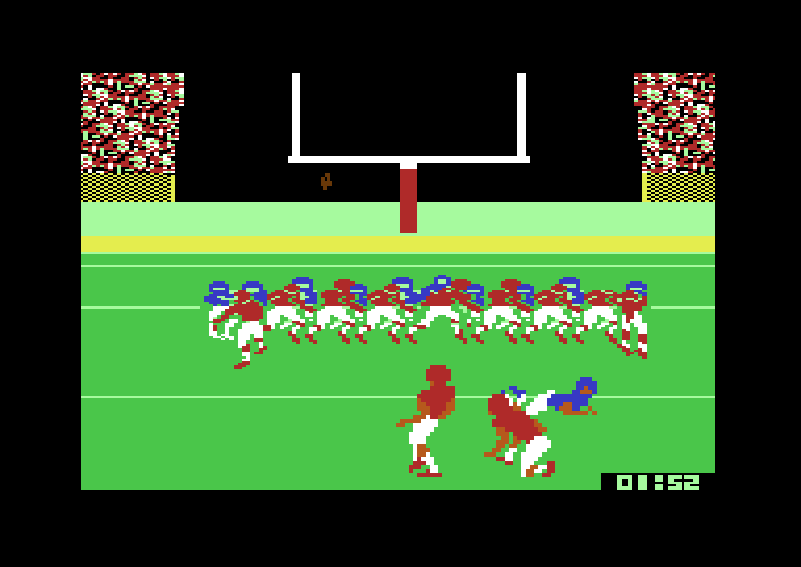 Det som i det minste imponerer meg med dette spillet er at det faktisk bruker en form for førstepersons synsvinkel. Det er nok ikke ekte 3D (og alle spillerne er selvsagt «sprites»), men man får et slags inntrykk av å faktisk befinne seg på banen her. I tillegg er det flere situasjoner jeg visuelt kjenner igjen fra det jeg har sett av sporten i amerikanske filmer og så videre. Så etter mitt svært begrensede skjønn, virker spillet å representere amerikansk fotball på en god måte. Jeg ville ikke blitt overrasket om det var populært da det kom i 1986.