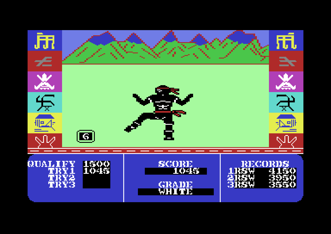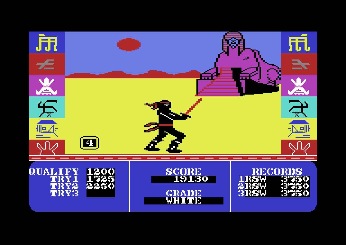Ninja Master befinner seg overraskende nok litt i samme gate som klassiske Summer Games, bare med ninjagreier i stedet for sommeridrett. Det har fire separate minispill, som må fullføres i tur og orden. Når dette er gjort går du opp i grad (belte), og må fullføre litt vanskeligere versjoner av spillene. Jeg vet ikke hvor mange ganger prosessen gjentas, for halvannen runde var mer enn nok for meg.