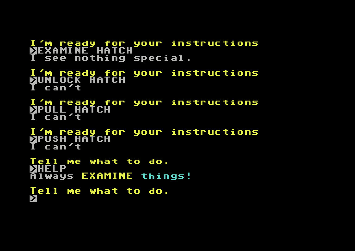 Hovedproblemet med spillet er ganske vanlig i slike gamle eventyrspill: Spillet har et svært begrenset ordforråd, og krever at du skriver inn akkurat riktig kommando når det egentlig burde finnes mange synonymer. Dessuten er det veldig begrenset hvor mye informasjon du får når du undersøker ting, og det gir så godt som aldri hjelpsomme tilbakemeldinger når det du prøver på av en eller annen ukjent årsak feiler. Her er det nok motoren og minnebegrensninger som er problemet, og ikke spilldesignet i seg selv (i motsetning til for eksempel The Dallas Quest fra omtrent samme tid, som er helt høl-i-hodet elendig designet).