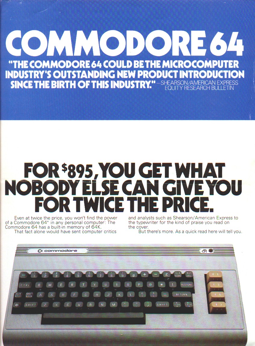 Noen av disse reklamene kan beskyldes for å være i overkant flåsete, men de lyktes i å og skape oppmerksomhet rundt Commodore 64 – mye fordi $595 for en maskin med 64K RAM faktisk var sjokkerende billig.