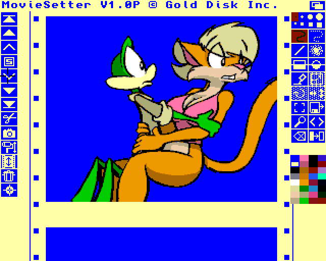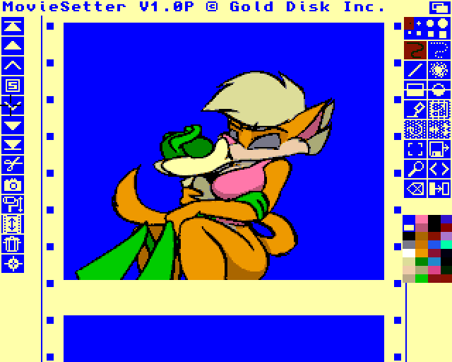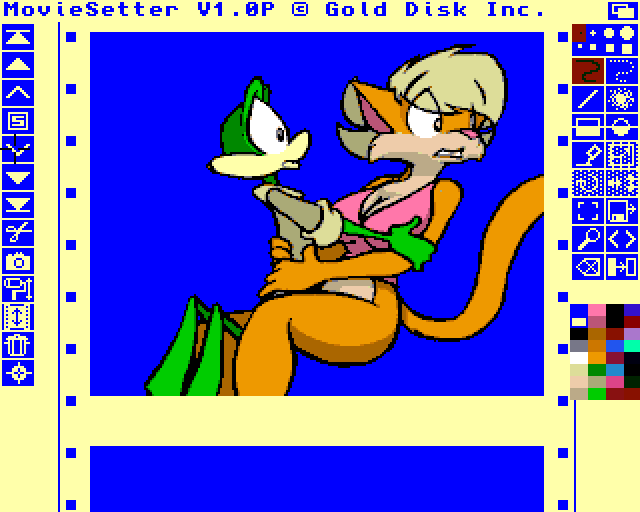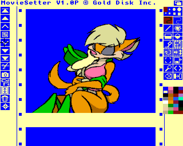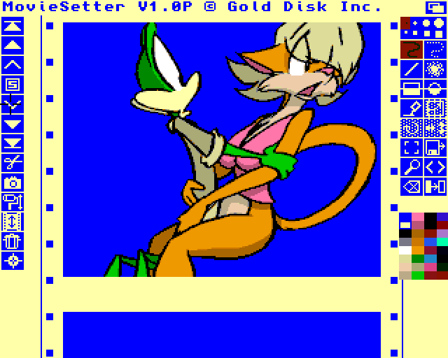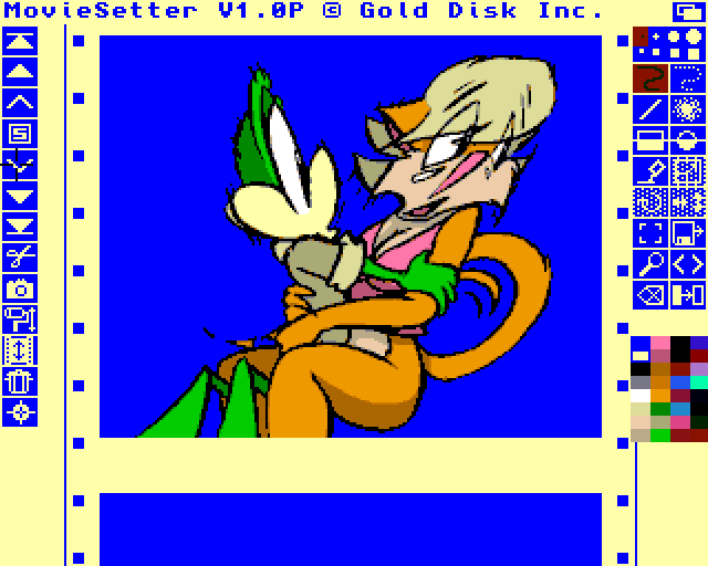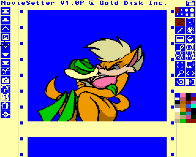 MovieSetter kom altså ut i 1988, og til å være så gammelt er det overraskende brukervennlig og kraftig. I tillegg er det et herlig veloppdradd program, som ikke løfter et øyenbryn av at det i mitt tilfelle kjører på en oppgradert Amiga 1200. Det utnytter seg tilsynelatende også av alt tilgjengelig ekstraminne. Jeg er faktisk skikkelig imponert over det her – ikke rart at det ble brukt i mange år etter sin opprinnelige lansering (animasjonen jeg testet var fra 1995, så det ble altså fortsatt brukt da).