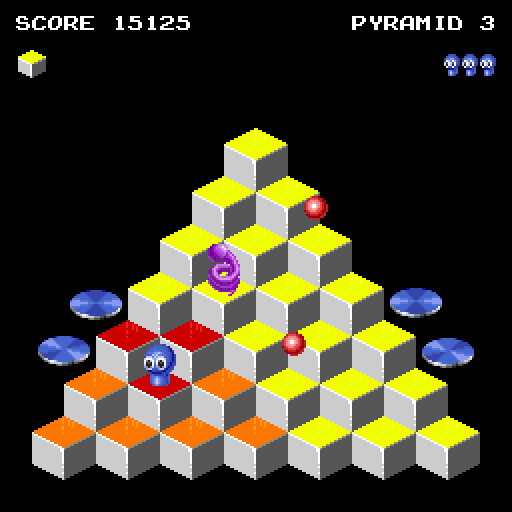 Dette er ikke første gangen jeg skriver om Q*bert-kloner her på berget. Tidligere har jeg tatt for meg grusomme Hexpert og ikke like grusomme Cuddly Cuburt, begge for Commodore 64.