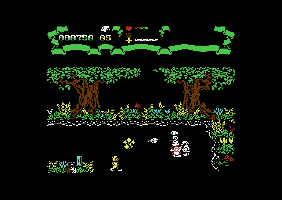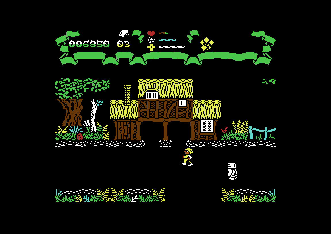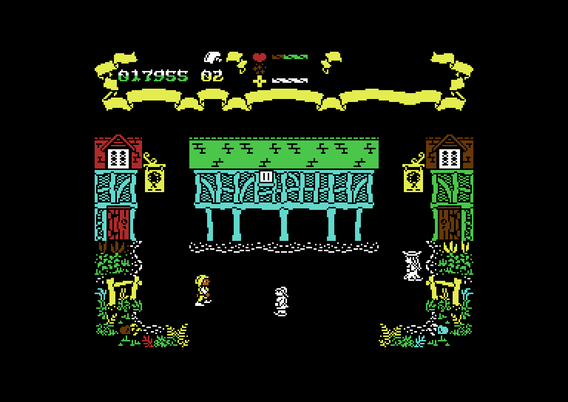 Jeg må si jeg liker grafikken i Firelord. Som du sikkert ser av skjermbildene bruker det en annen modus enn majoriteten av spill i disse samlingene – oppløsningen er relativt høy, samtidig som fargebruken er begrenset. I dette tilfellet fungerer det veldig godt, med detaljerte og forseggjorte skoger, bygninger og figurer.